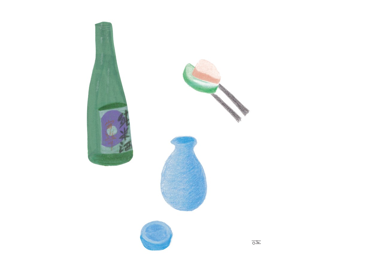 겨울이 깊어지면 꼭 먹어야 하는 술이 있다. 바로 따뜻한 사케. 큰 병에 든 술을 작은 병에 옮겨 담아 데운다. 술을 데우는 방법은 크게 두 가지가 있다. 전자레인지에 넣고 50초. 끓는 물에 50초. 같은 시간이 걸리는 것처럼 보이지만 냄비에 물을 받아 가스를 올리고, 물이 끓을 때까지 걸리는 시간을 더하면 중탕이 훨씬 오래 걸린다. 왠지 공을 들이면 더 맛있을 것 같지만, 꼭 그렇지도 않다. 사실 그 정도를 구분할 혀가 못된다. 우린 취하는 것이 좋다.