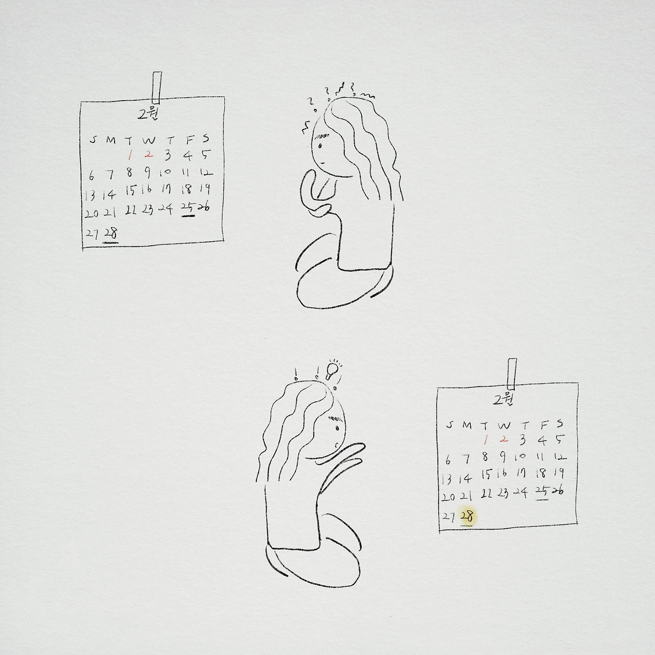 2월에 생일인 친구가 두 명이라 항상 헷갈렸었다. 그중 한 명은 이제 만나지 않는 친구가 되어 더 헛갈리게 되었다. 25일 과 28일 중에 하루인 건 분명한데 도무지 감이 안 잡혔다. 게다가 25일이라면 이미 지났으니 큰 낭패였다.