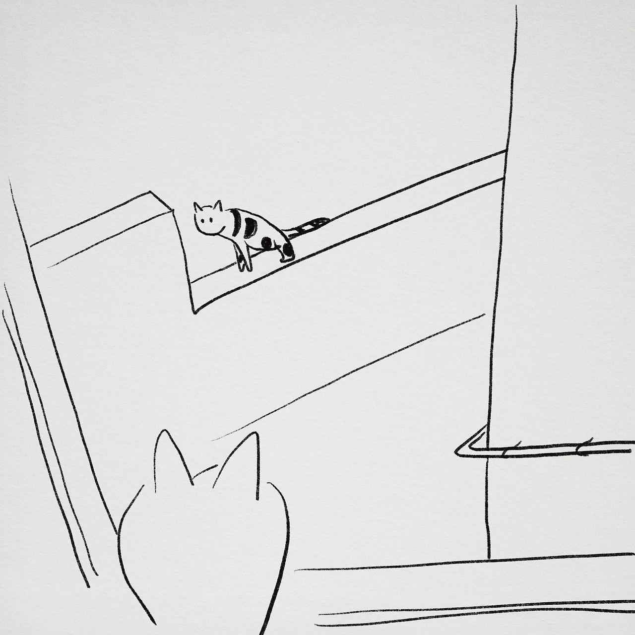 감자가 평소처럼 문 열린 창문 쪽으로 폴짝 뛰어 올라갔다. 방충망에 코를 밖은 채 조금씩 경계하는 소리를 내더니 이내 하악질을 하는 감자. 방충망을 열어 창문 밖으로 고개를 내밀어 보니 옆집 담 위에 골목냥이와 기싸움을 하고 있었다. 산전수전 다 겪은 골목냥이가 슬금슬금 담을 넘어 가까이 다가오자 감자는 흠짓 뒤돌아 나를 한 번 보고는 하악질을 해댔다.