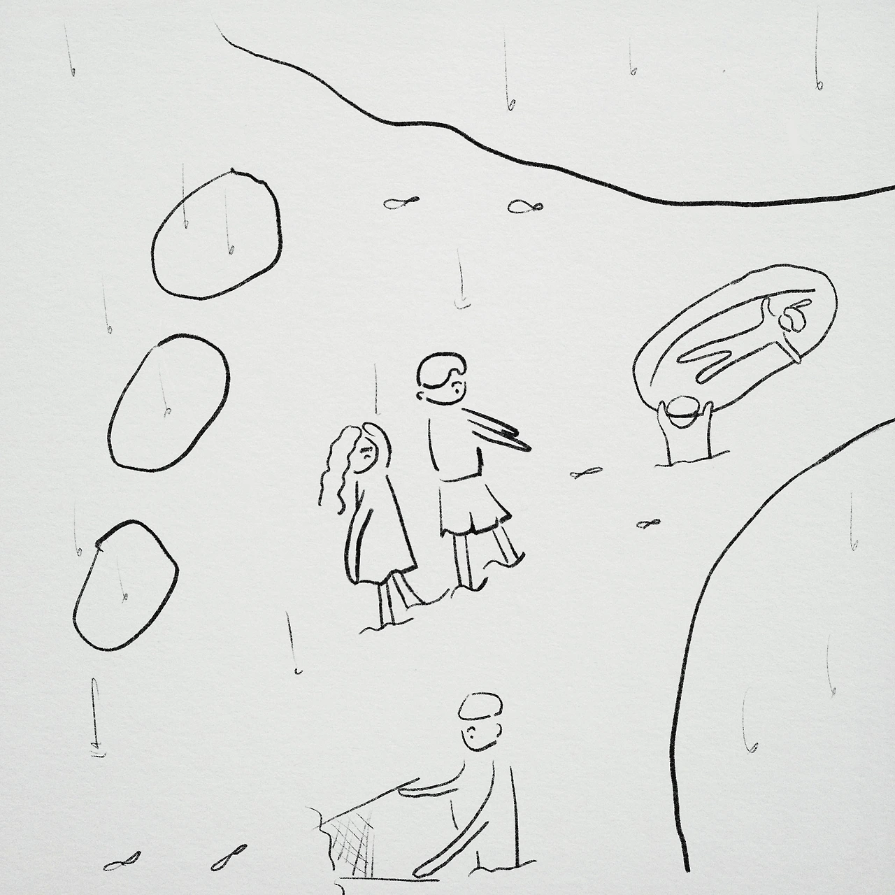"혹시 몰라서. 비도 오고. 오늘은 답사. 장마 지나고 나면 물도 훨씬 깊어지겠지."