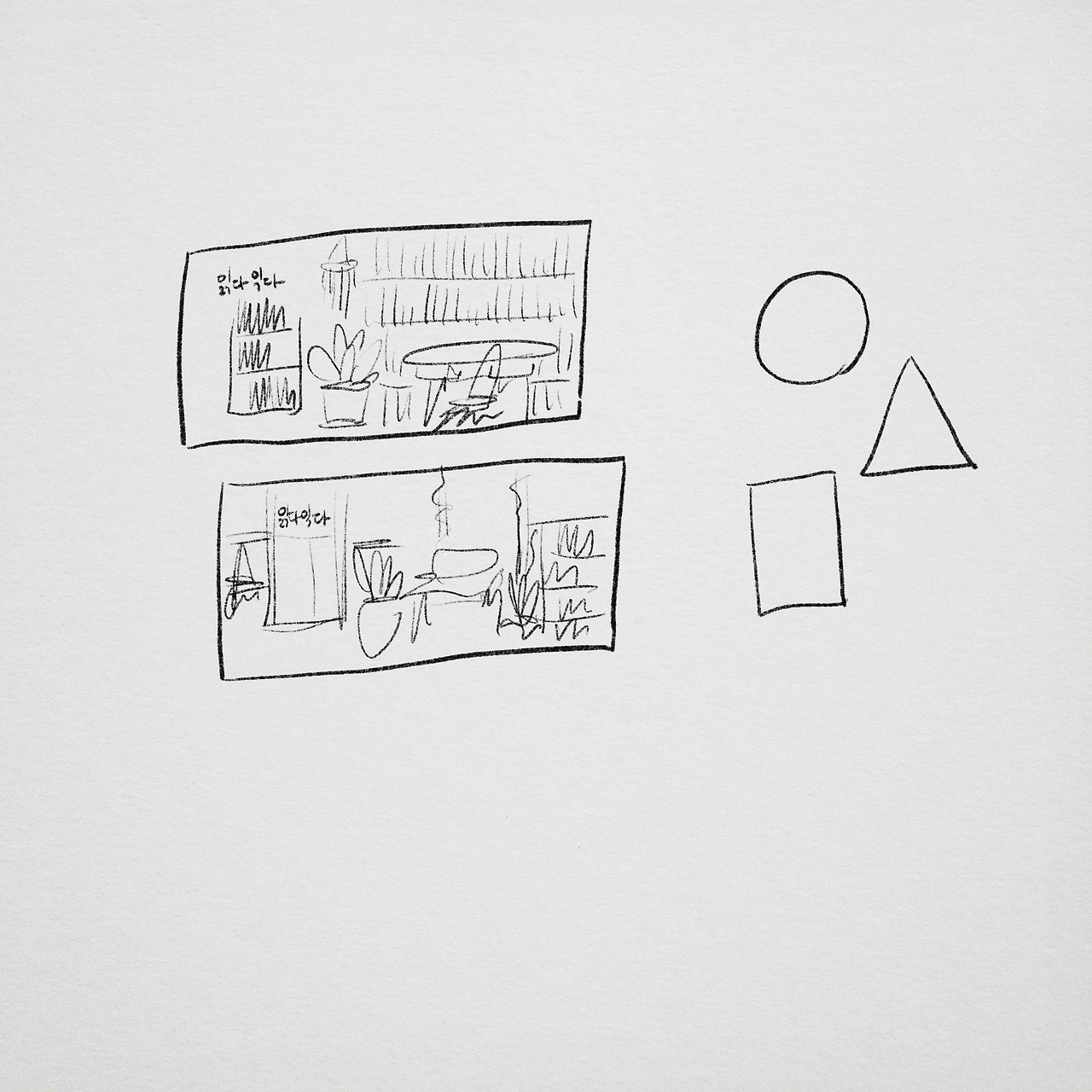 선, 동그라미, 세모, 네모로 책상, 식물, 책, 레이스 천까지 만들었다. 해보기 전에는 그게 가능할 줄 몰랐는데 완성하고 보니 그럴듯하다. 만족.