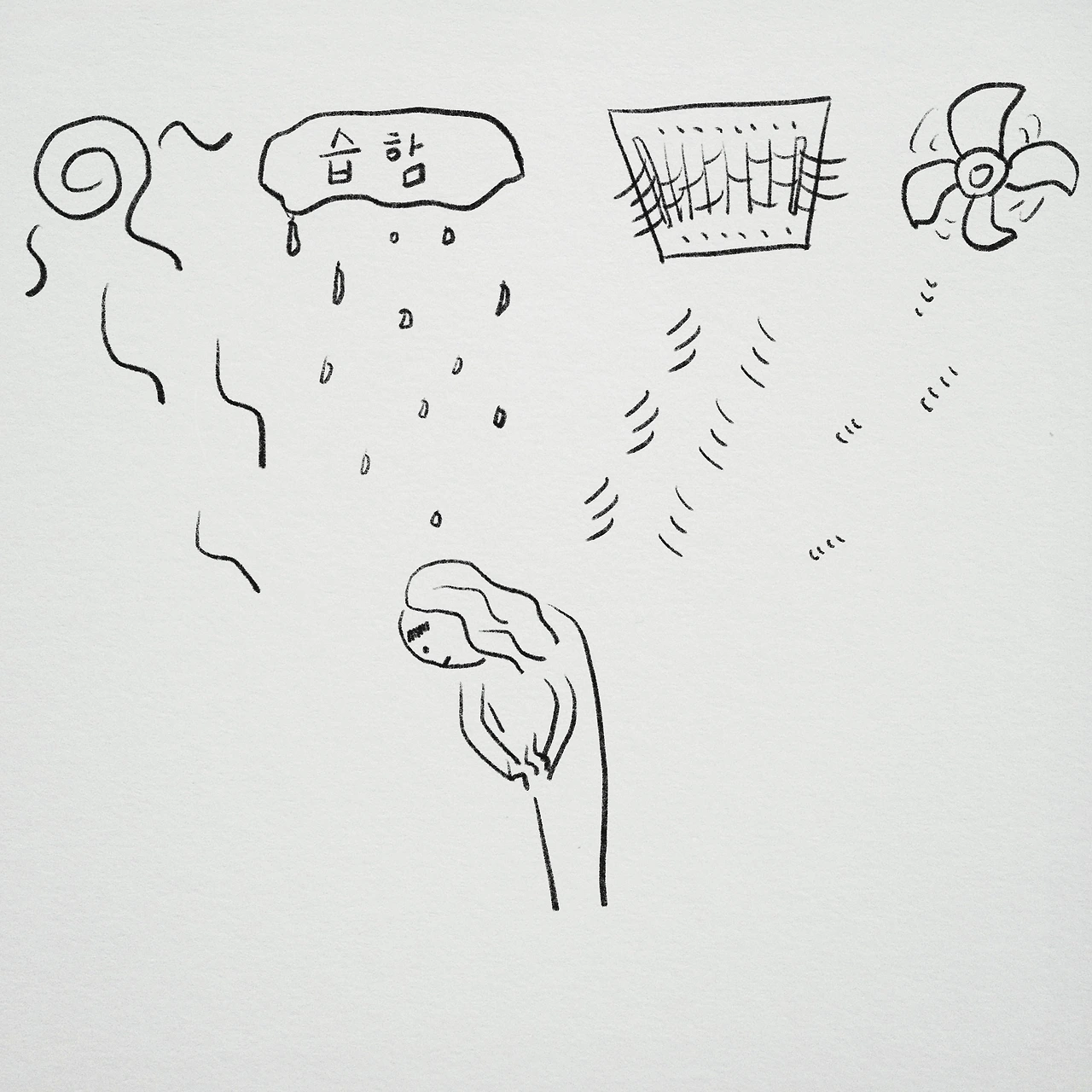 땡볕, 소나기, 습도 99%, 에어컨 바람, 선풍기 바람.