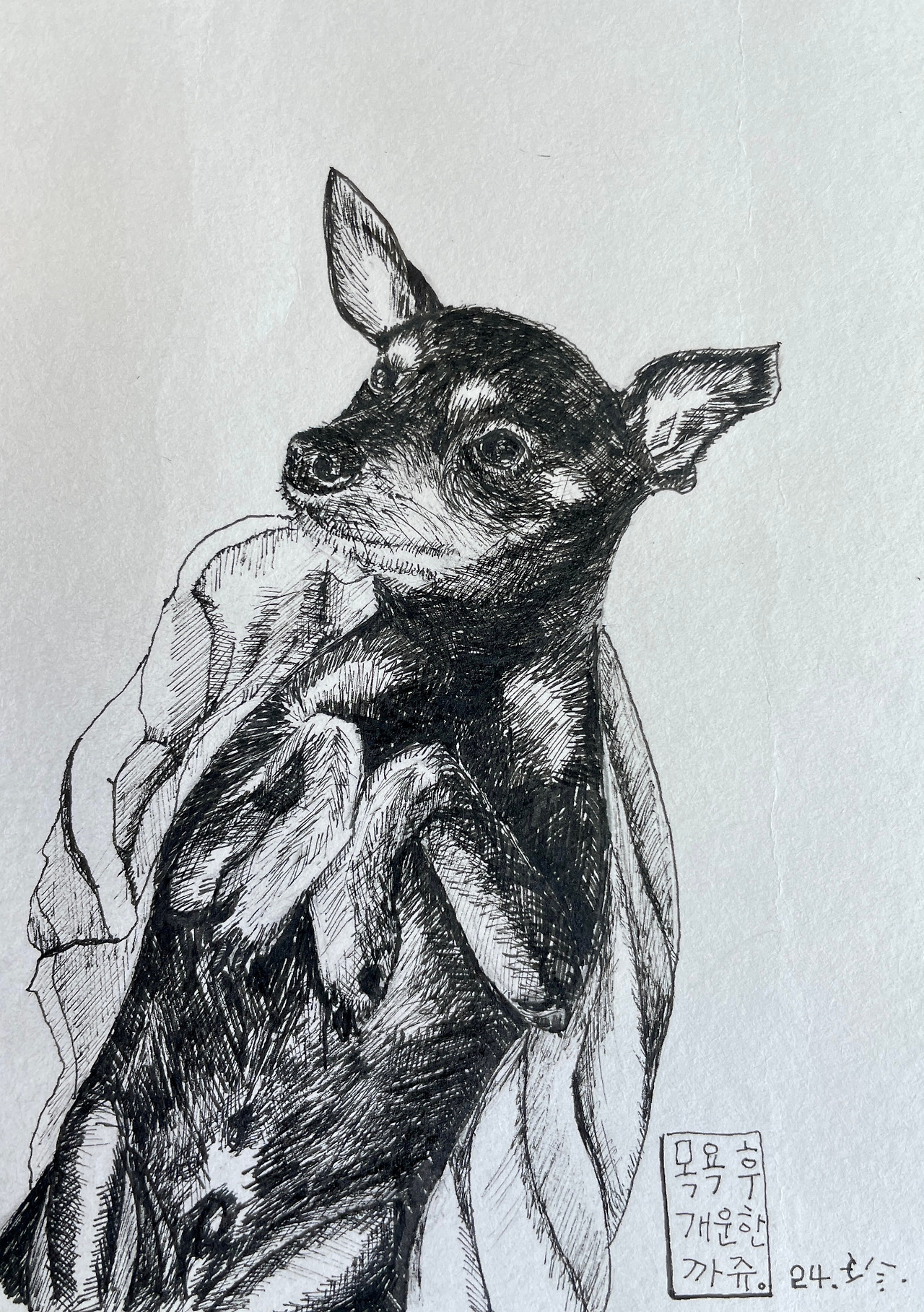 사람들에게서 받은 상처는 세상 속에서 쉽게 아물지도 않고 흉터를 남기지만 집에서 강아지의 그 눈망울 속에서, 그 철없이 흔들리는 꼬랑지의 흔들림 속에서, 또는 곁에 조용히 와서 앉아 있는 그 엉덩이의 웃음끼 가득한 살이 나를 치유한다. 영화에나 나오는 캡슐에 나를 넣어 다시 살아갈 수 있게 상처를 치유한다.