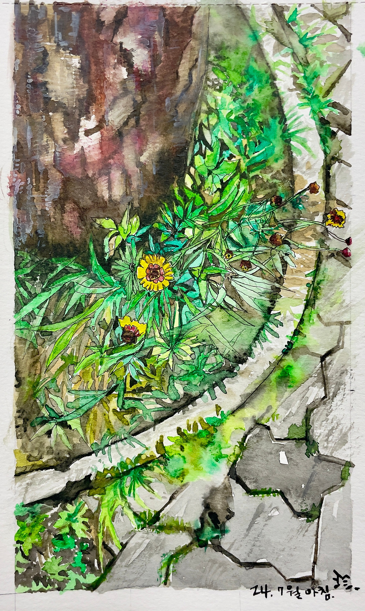 길가에 아무렇게, 아무렇지도 않게, 아무 걱정 없는 것처럼 핀