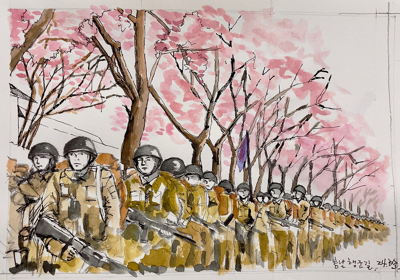 아마도 군대 행군이 아니었으면 벚꽃 날리는 봄이 무척 이도 설레는 청춘의 나날이었을 것이다.