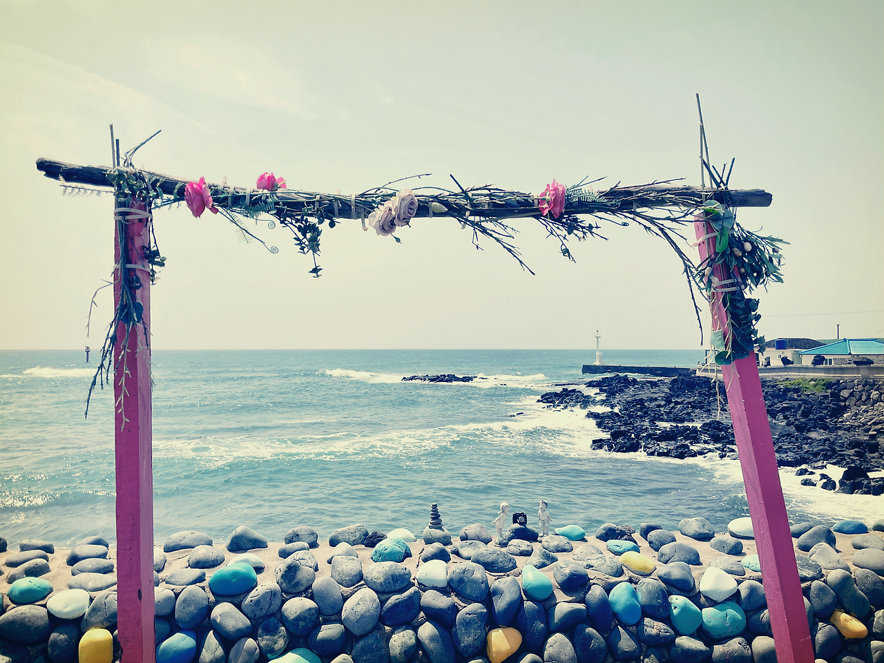 바람 불고 비 오는 4월의 바닷가 월요일은