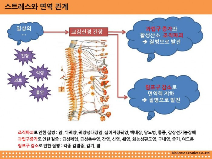 지난가을부터 책을 쓰고자 거의 매일 새벽 2-3시에 잠이 들었습니다. 11시에 퇴근하여 씻은 후 글 한편 쓰고 자는 것이 습관이 되었습니다. 잠을 자는 시간 말고 하루 종일 나의 몸과 뇌, 세포들은 쉬지 않고 일을 하고 있었던 것입니다. 항상 긴장하고 경직된 상태, 성취를 위해 몰입해 있는 <교감 신경>이 발달된 상황에서는 과립구가 활발해지고, 과립구가 염증을 일으킨다는 것이 송현곤 선생님의 주장입니다.