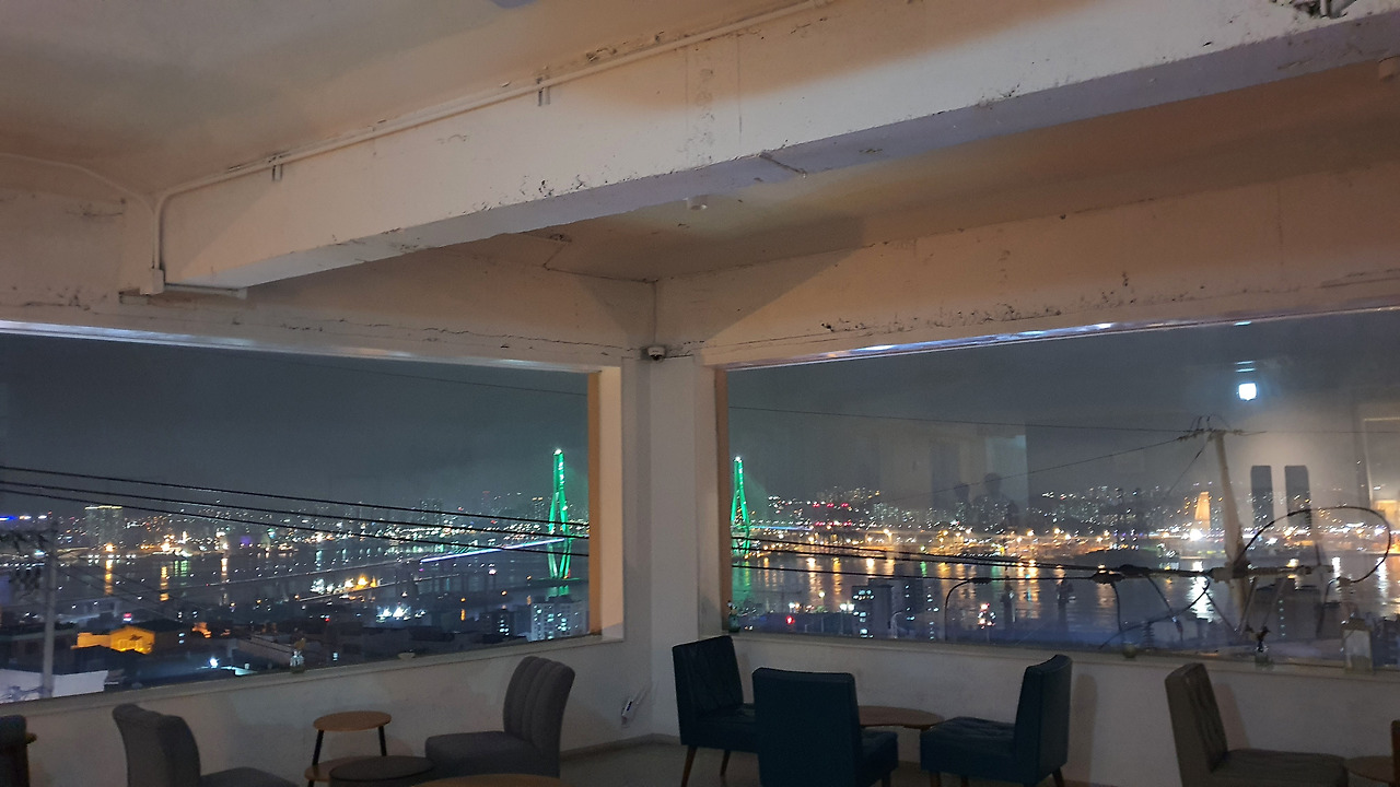 두 개의 창문으로 쪼개어 보는 북항대교처럼 온라인으로 보는 공연도 미팅도 강의도 이렇게 구분되고 나뉘기 시작하는 것 같다. @ 카페 카린