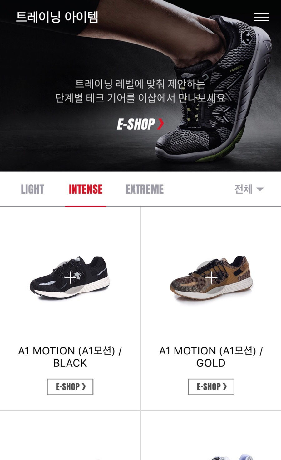 나에게 최적화된 운동 영상, 예를 들면 내 기초체력 수준에 맞는 복근 운동, 전신운동, 상/하체 운동을 다운로드할 수 있고, 나의 트레이닝 게이지를 0%에서 100%까지 올리면 다음 레벨로 올라갈 수 있습니다. 그리고 나의 운동 피드를 함께 운동하는 사람들과 바로 공유를 할 수도 있고요. 물론 데상트에서 판매하는 트레이닝 아이템을 자연스럽게 둘러볼 수 있고 관심이 가게끔 하는 상품들도 마지막 하단 카테고리에 보입니다.