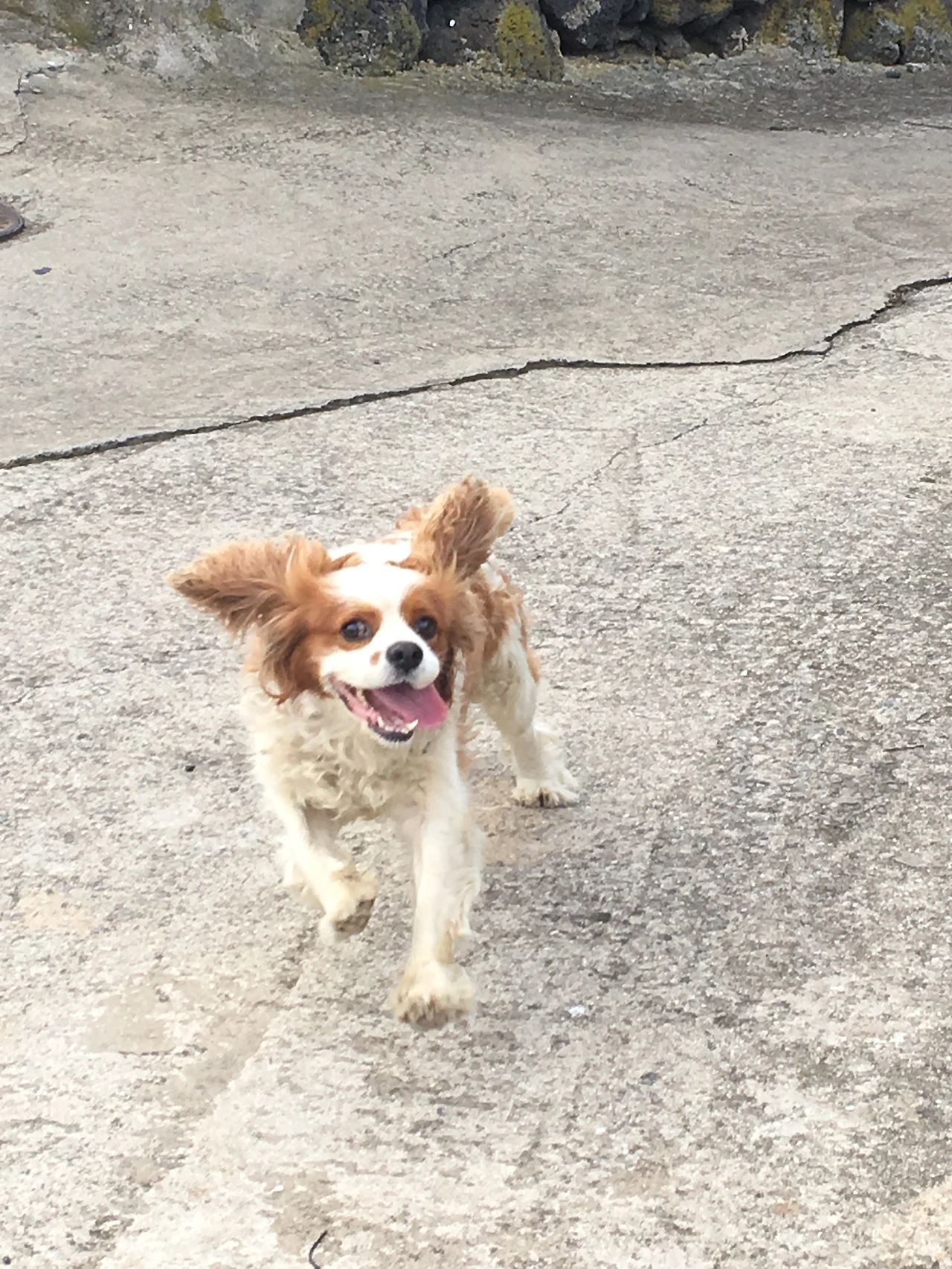 마을 어귀에 도착하자마자, 온 강아지 한 마리가 뛰어나오더니, 갑자기 친한 척을 했다.