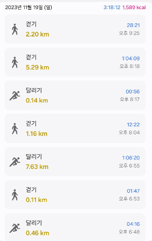 그리고 7.49km을 걸어서 집에 갔습니다. 걸어오면서 걸리는 시간이 1시간 반정도 걸렸습니다. 그래서 그날 하루 총 8.97km를 뛰고 9.81km를 걸었습니다. 어젯밤까지 우울했던 사람이 이 정도가 가능한 이유는 조증이었기 때문이었습니다..
