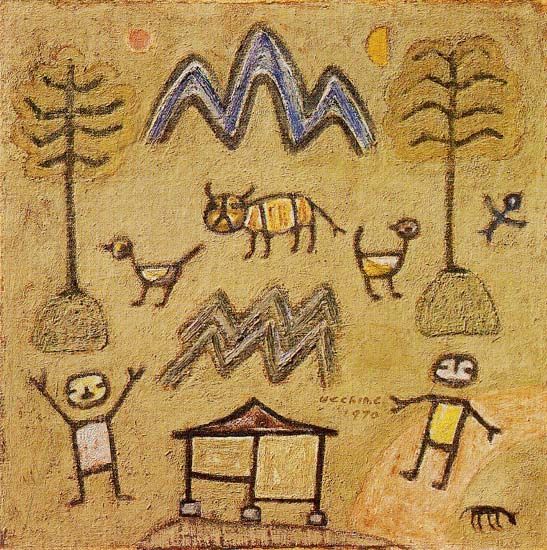 이토록 자연에 대한 순수한 동경을 가득 품은 장욱진의 그림세계는 어떠한가. 장욱진의 그림이 현대미술로 분류되니 현대미술의 가장 근간이 되는 추상성이 돋보인다지만, 장욱진의 그림세계는 추상성만으로 포괄해버리면 특유의 천진난만한 소년성을 놓칠 수 있다. 장욱진의 작품은 마치 동굴벽화를 보는 느낌이다. 그만큼 인간 원시적인 근원의 무언가를 원초적으로 표현해내려는 듯하다. 장욱진은 인간의 근원을 아이들에게서 찾았다. 장욱진은 아이들을 무척이나 좋아하고 동경했다. 따라서 굳이 골라야한다면 장욱진의 세계는 추상성보다는 순수성이다. 그림이 제멋대로인 이유도 아이들은 제멋대로이기 때문이다. 흔히들 장욱진의 그림이 지나치게 작다고도 이야기한다. 유홍준 교수는 그래서 장욱진의 그림에선 그림을 그리는 바닥의 재료가 중요하다고 했다. 장욱진 스스로는 그림을 작게 그리는 이유에 대해서 그림이 작아야 화면을 지배할 힘이 생긴다고 말했다.