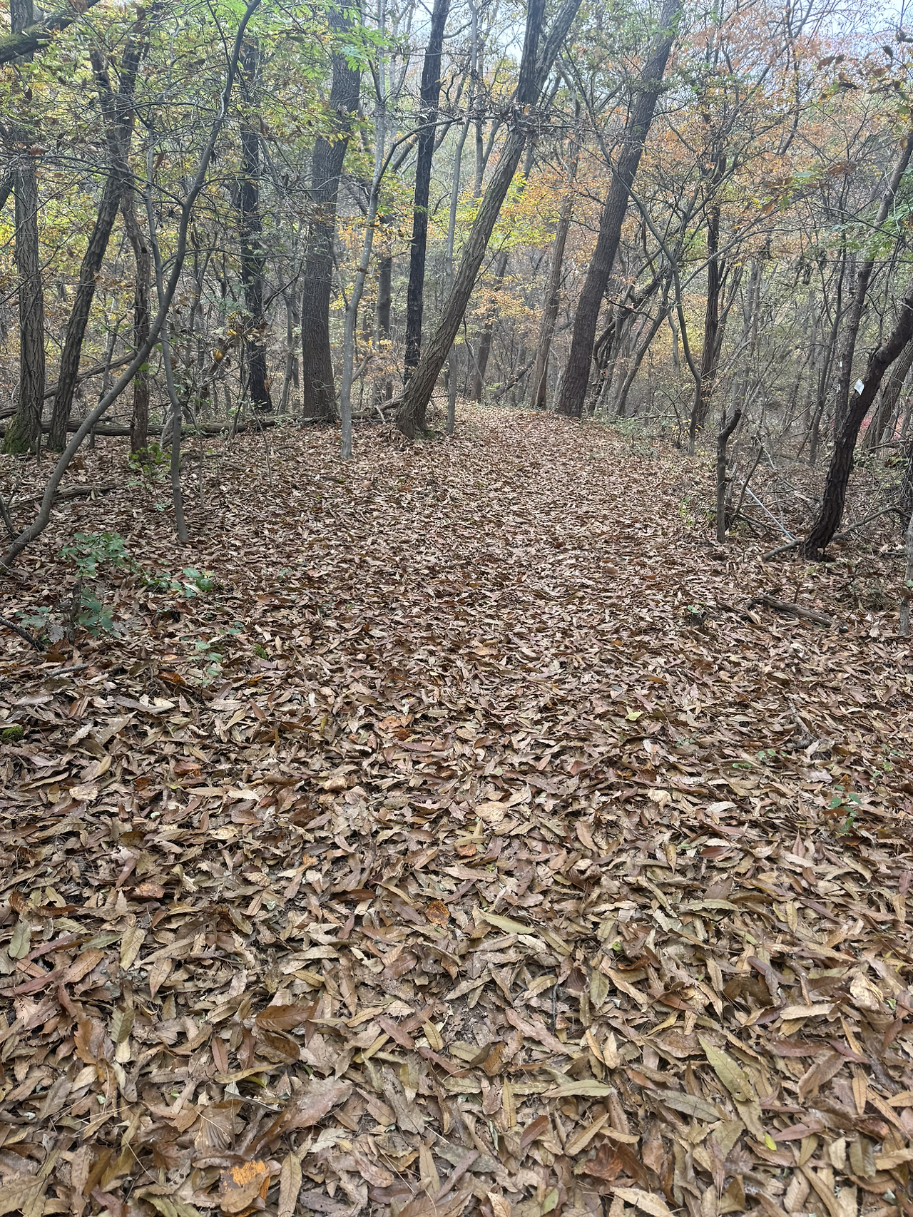 왔던 길은 낙엽이 많아서 내키지 않아 계속 전진하다가