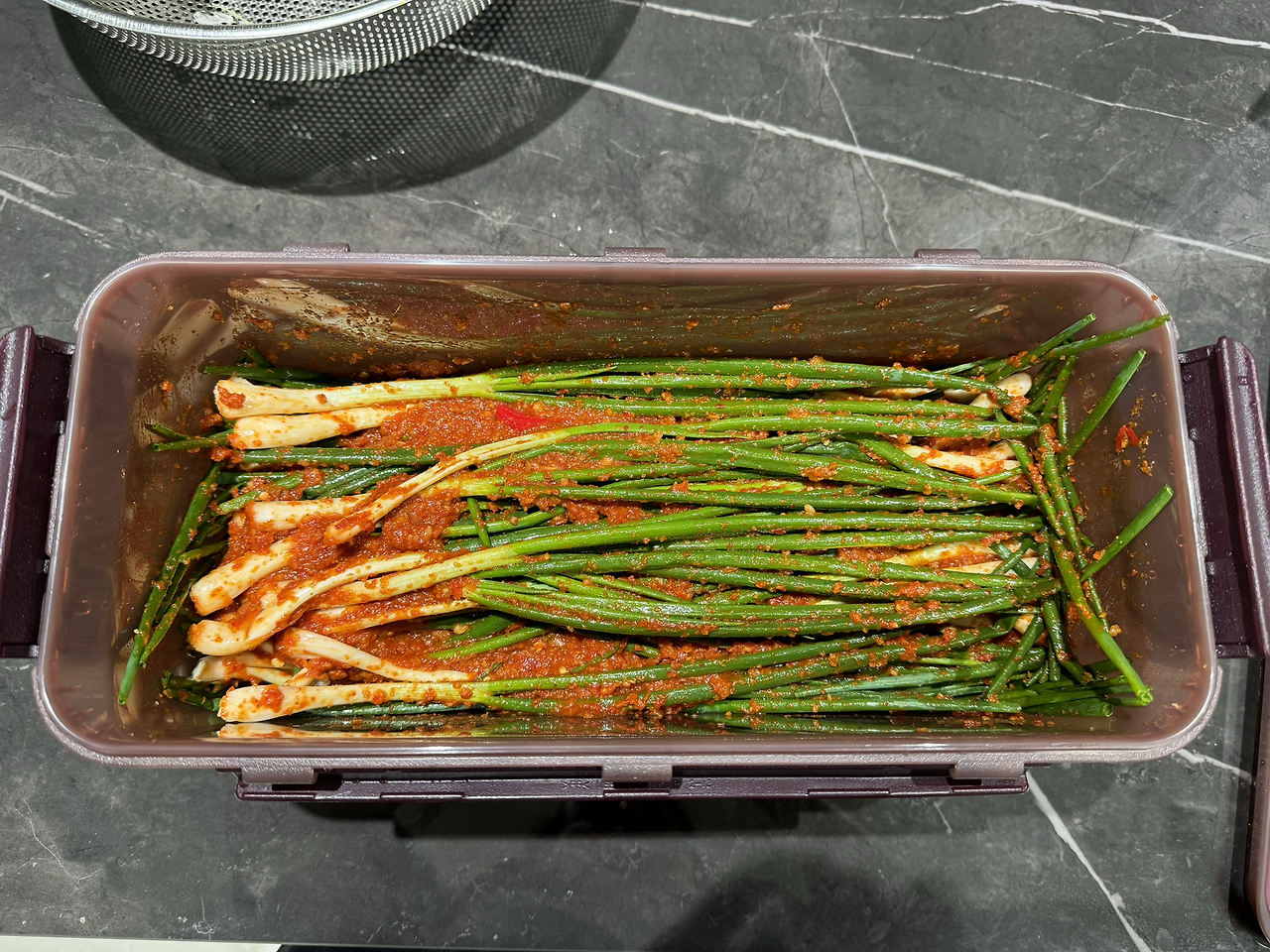 마트에서 쪽파가 싸길래 파김치를 담가봤다.
