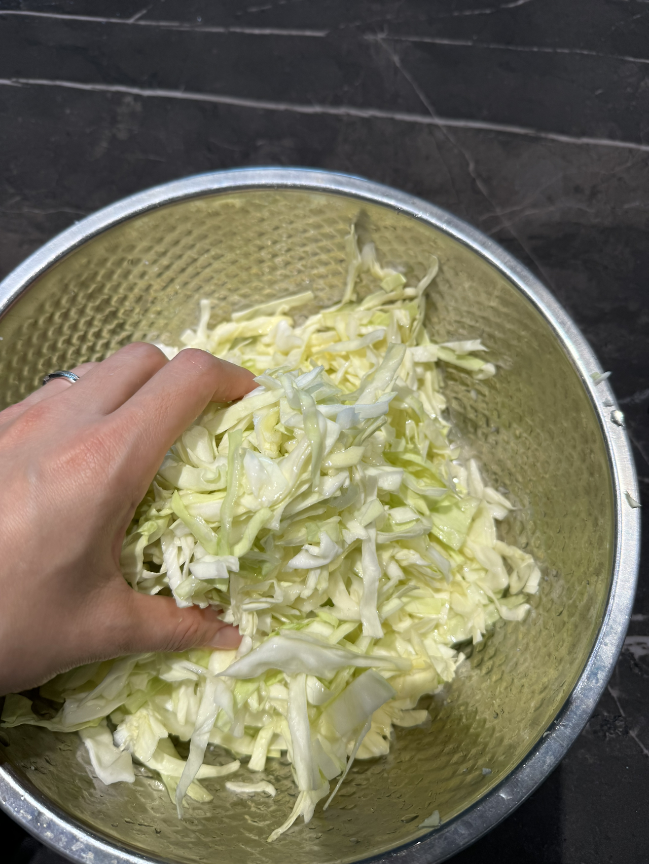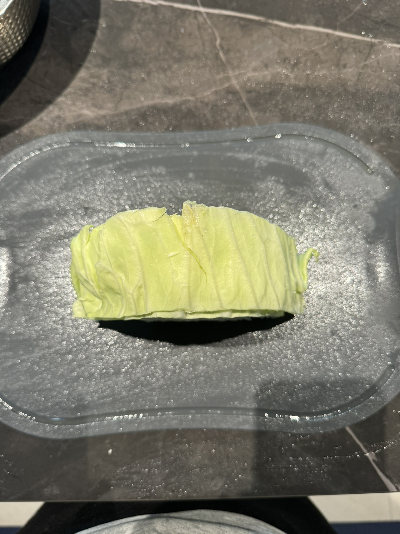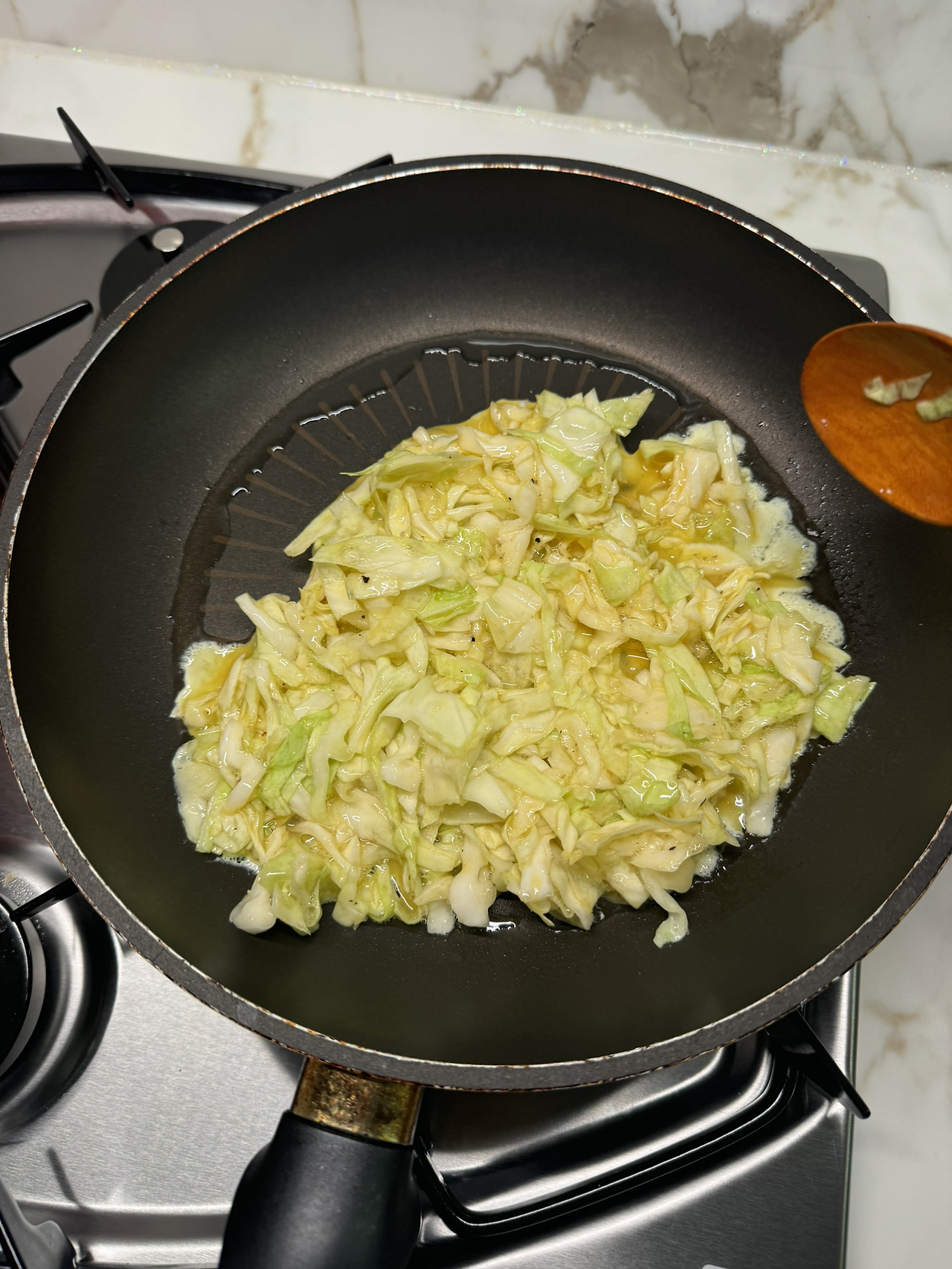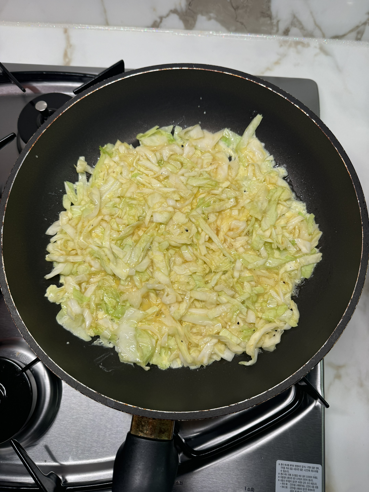 초록빛 양배추에 약간의 노란빛이 나면 된다.