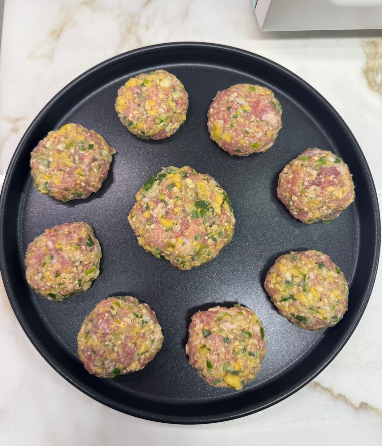 저탄수화물을 시작하고 나서 단백질과 식이섬유로 포만감 있고 정서적으로 만족감을 주는 음식을 고민하다가, 완자를 만들어 보았다. 채소와 망고 적당한 탄수화물로 영양가도 풍부하게 하여, 세 식구 모두 먹을 수 있게 간을 약하게 했다.