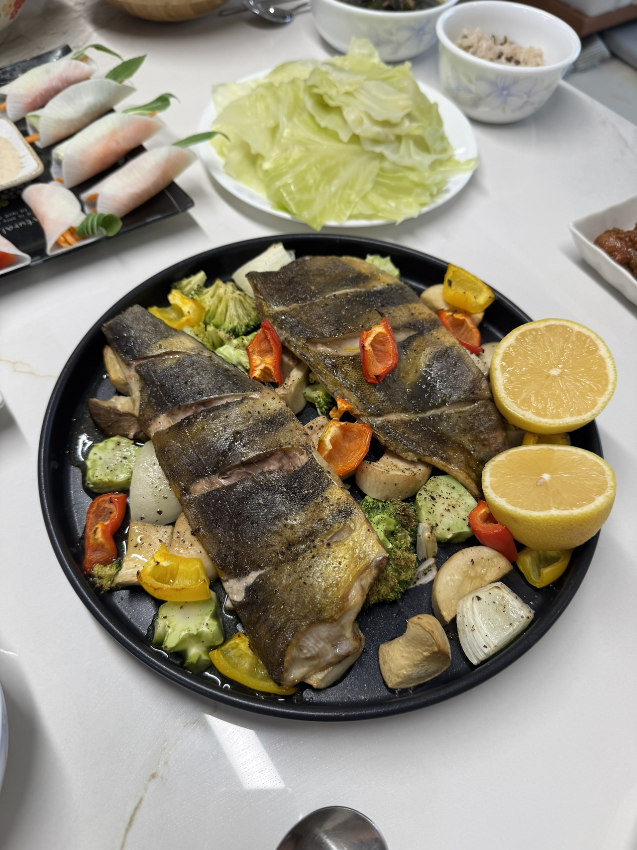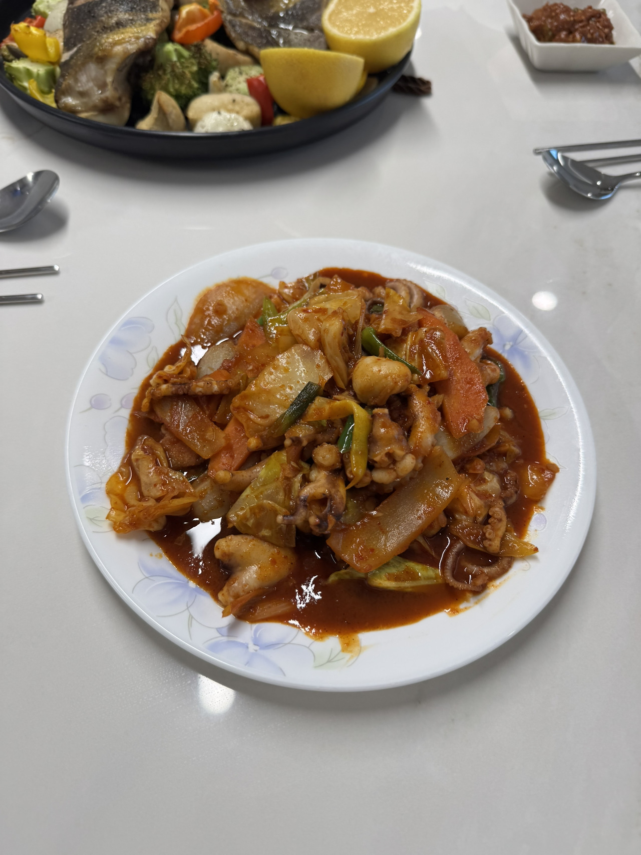 어머님&아버님댁에 가면 아주버님과 다 함께 소고기를 구워 먹었기 때문에 육류는 최소한으로 하고, 메인메뉴를 해산물로 정했다. 매콤하고 달콤한 낙지볶음과 일전에 남편이 아주버님 드리고 싶다 했던 채소인면어구이, 내 취향인 채소 무쌈말이, 그리고 아주버님이 좋아하시는 로제떡볶이도 같이 준비했다.