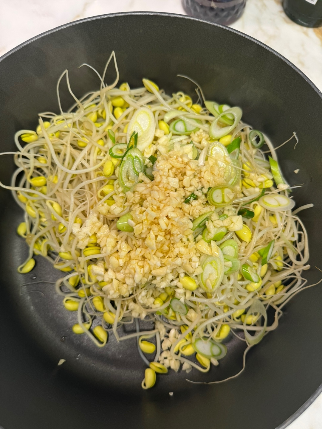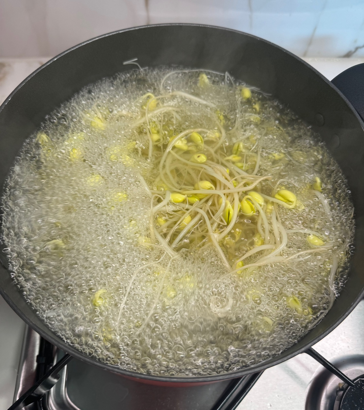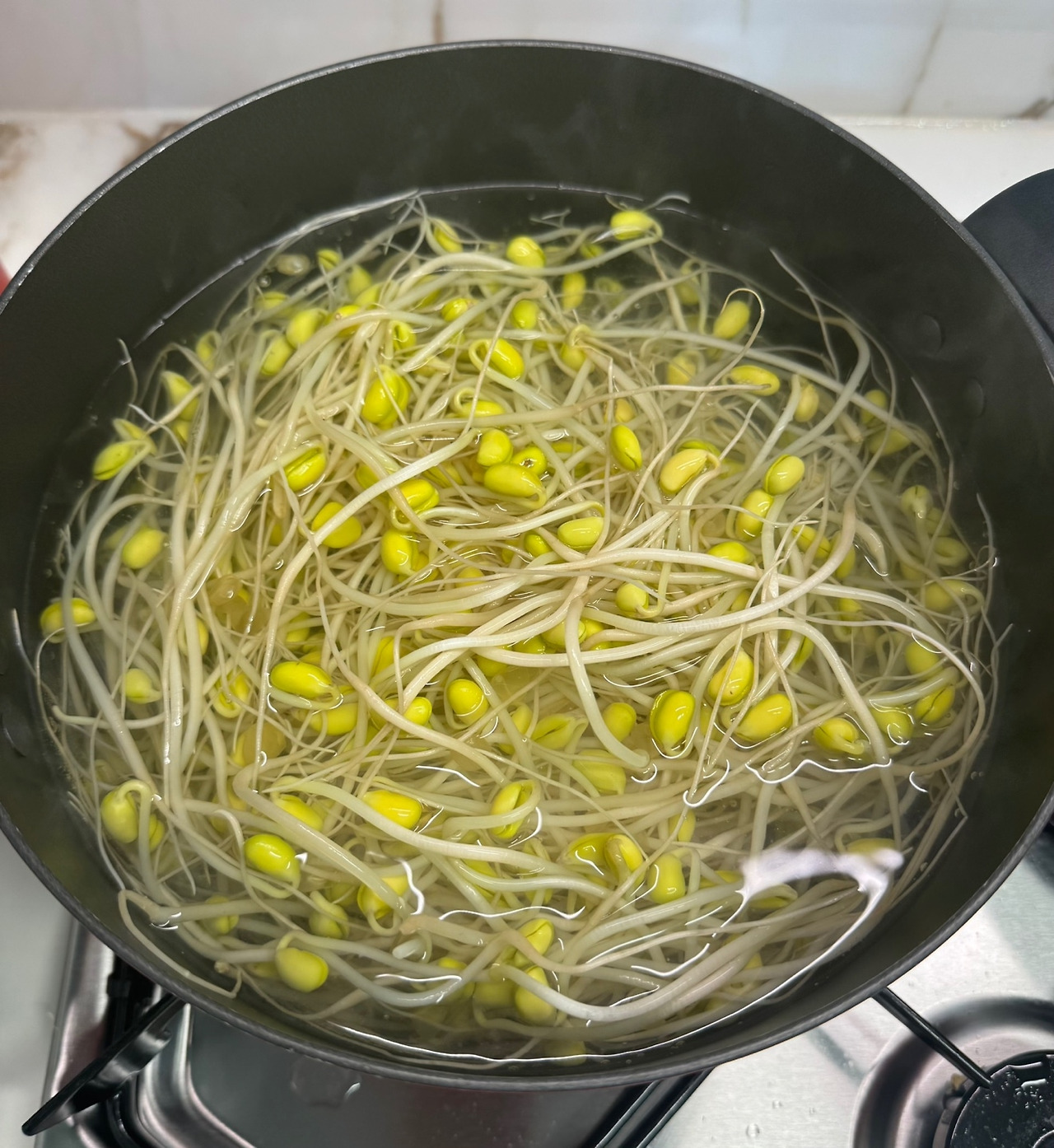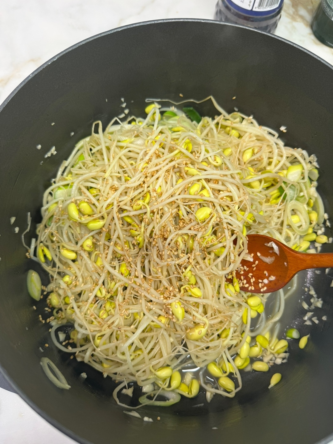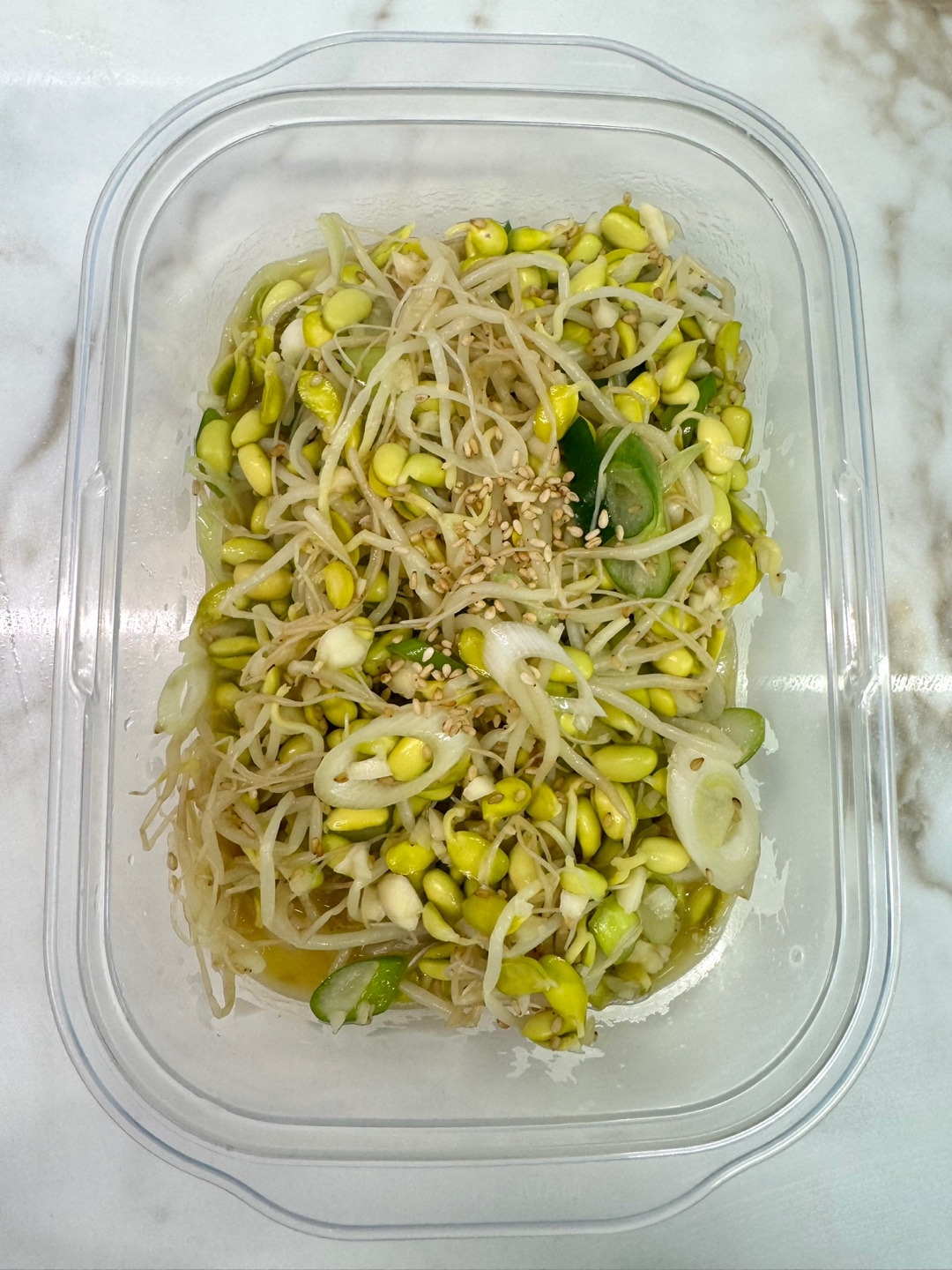 나물 하면 콩나물! 비빔밥으로 먹을 때 빼놓을 수 없는 아이다. 어머님께 달래장도 함께 보내기 때문에 비벼드시면 좋으실듯하여 콩나물도 같이 무쳐보았다.
