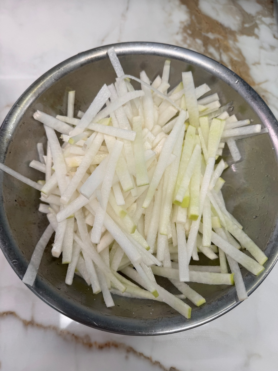 오일장에 가서 맛있는 제주무를 샀다. 달큼하고 시원한 것이 무나물을 만들면 무자체의 단맛으로 짠맛만 약간 넣어줘도 맛이 좋다.