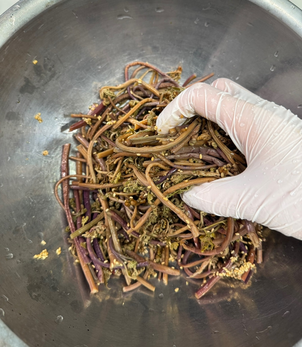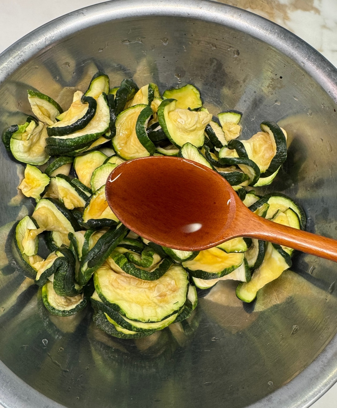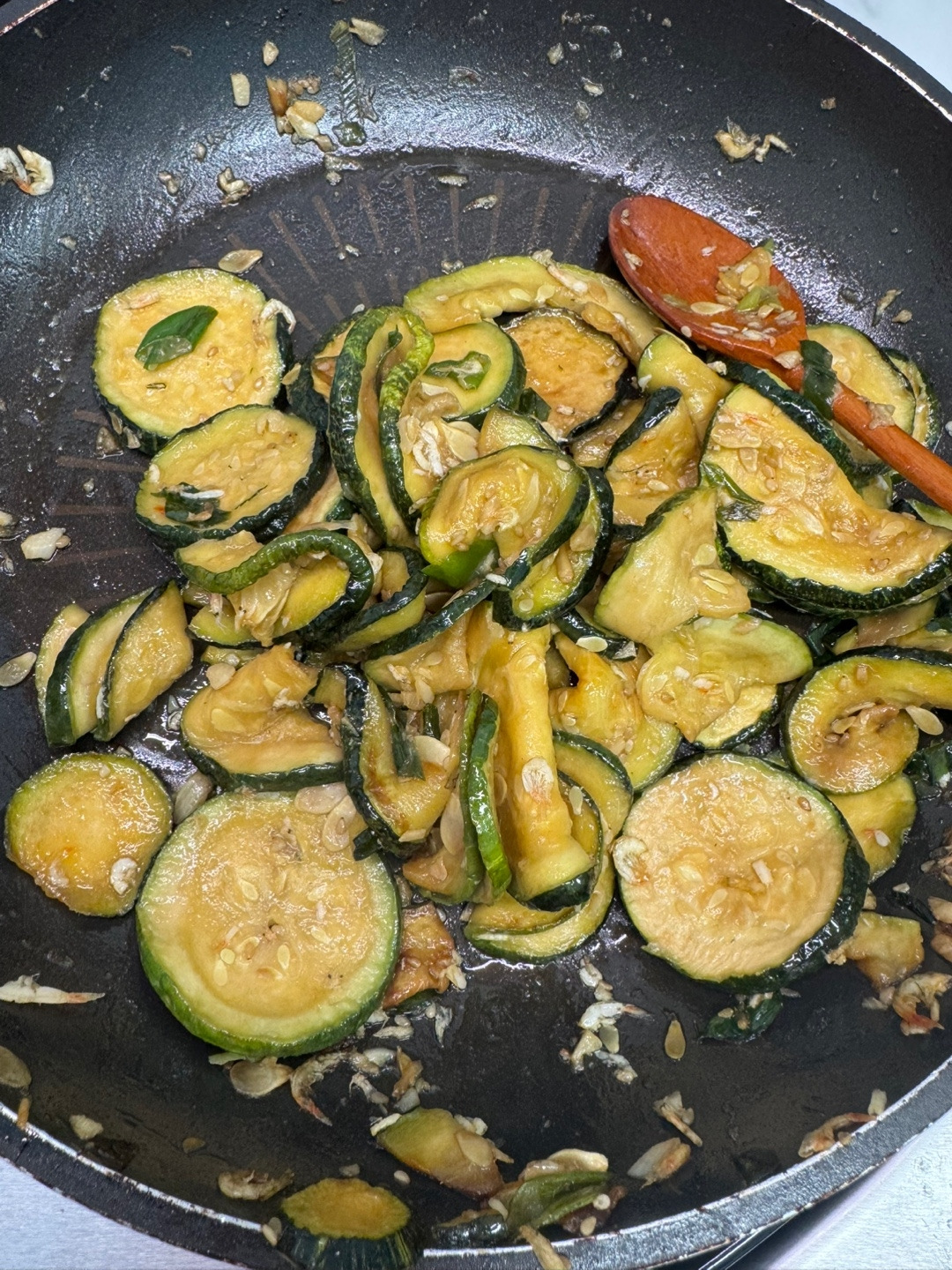 호박나물은 새우젓의 양을 조금씩 가미하며 넣어야 짜지 않다. 말린 나물은 양념을 흡수하기 때문에, 자칫하면 짜거나 기름질 수 있다. 이날 만든 호박은 뜨거울 땐 간이 맞았는데 식으니 약간 짰다. 밥이랑 먹으면 무리가 없기에 수정하지 않고 이대로 완성시켰다.