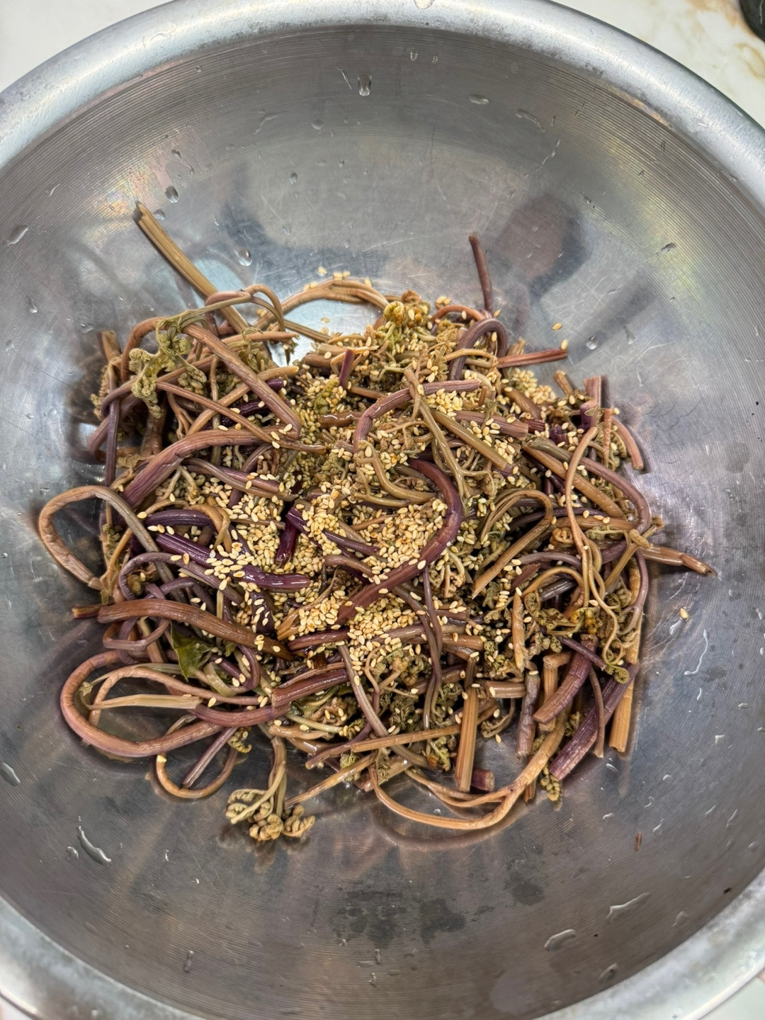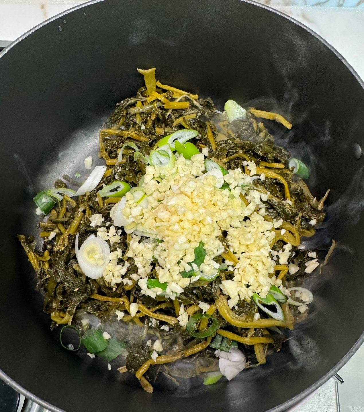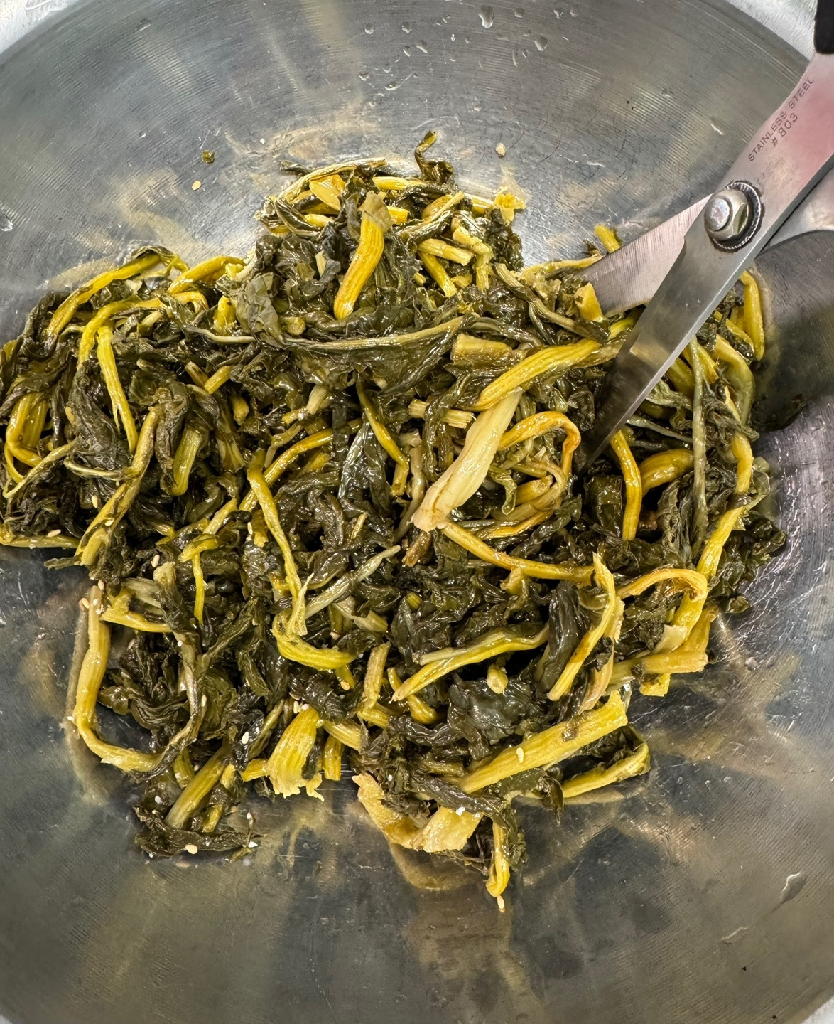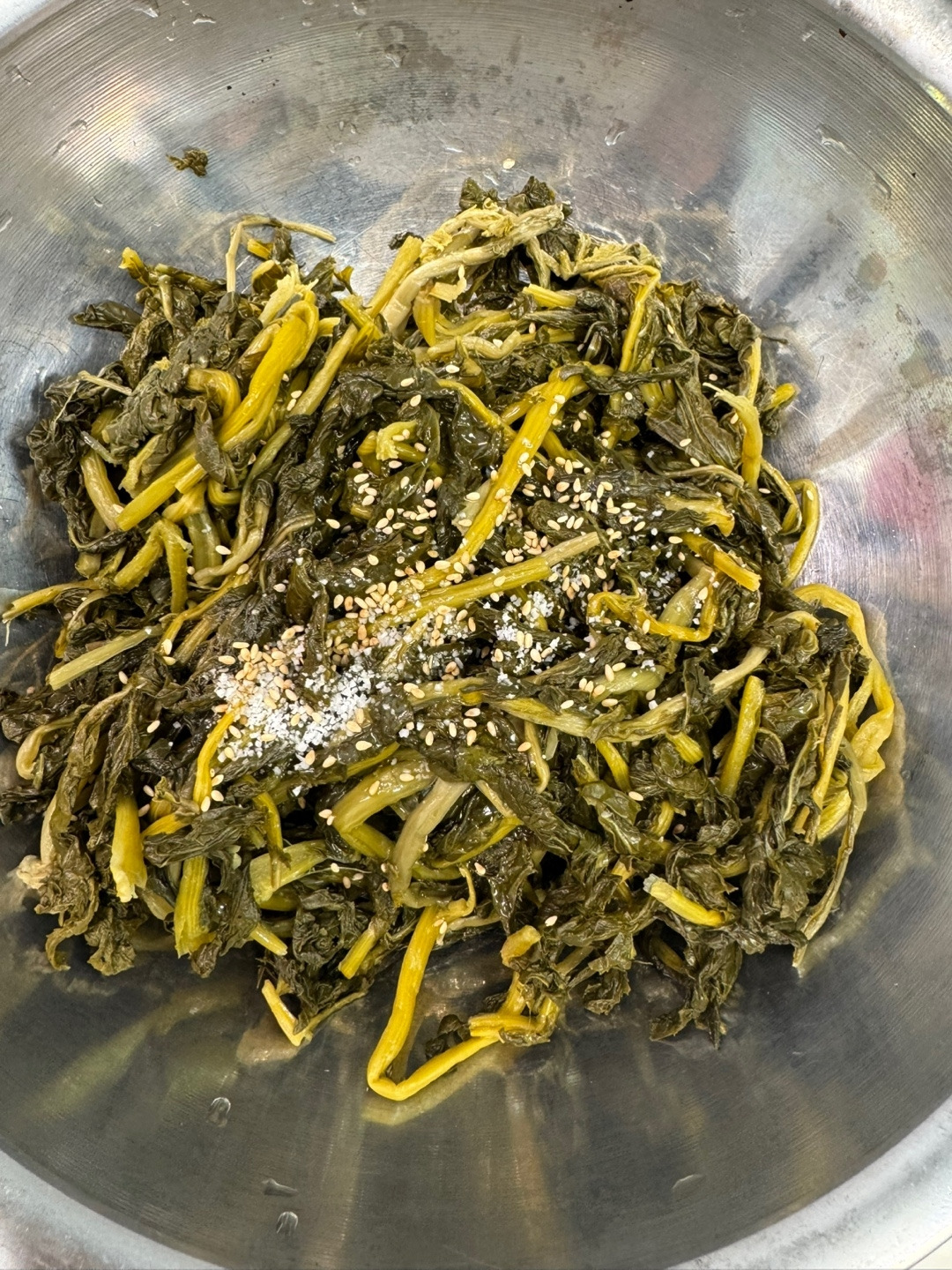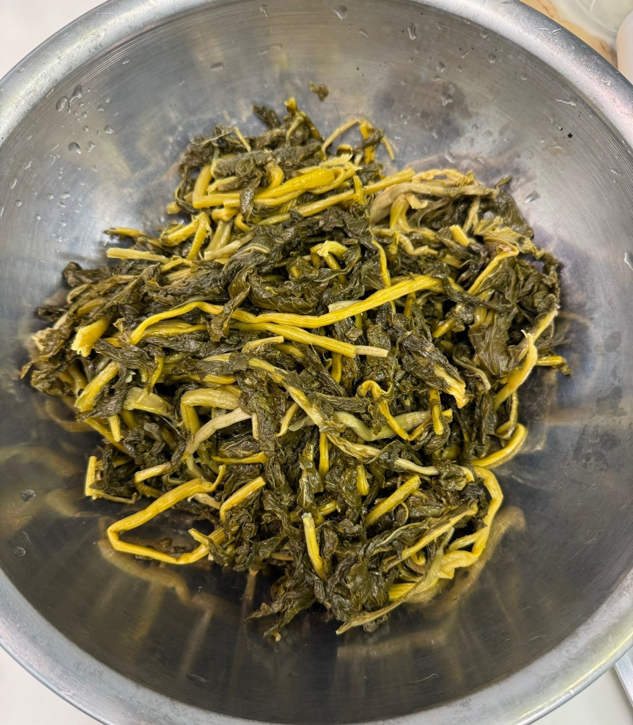 시래기(물에 불려서 껍질을 까고 쪄둔 것.)