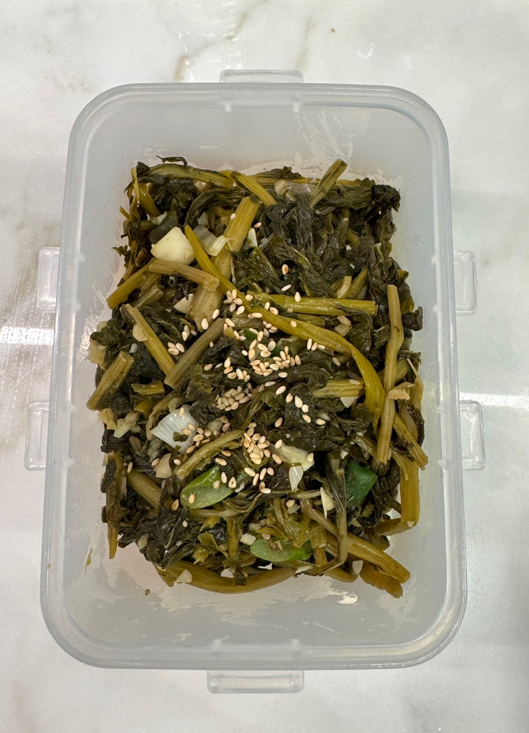 병원에 계신 어머님에게 처음으로 나물반찬을 해드리는 거라 실수도 있었고 빼먹은 조리방법이나 재료들이 있었는데, 간을 전체적으로 어떻게 잡아야 할지가 어려웠다. '내가 먹을 수 있게 만들자'라고 언제나 다짐하지만. 음식을 드리는 입장으로써 먹는 분의 취향이 고려되지 않을 수 없다는 것을 최근 느끼고 있다.