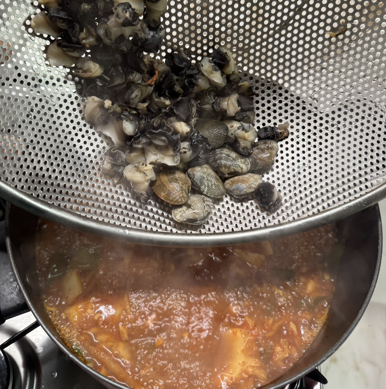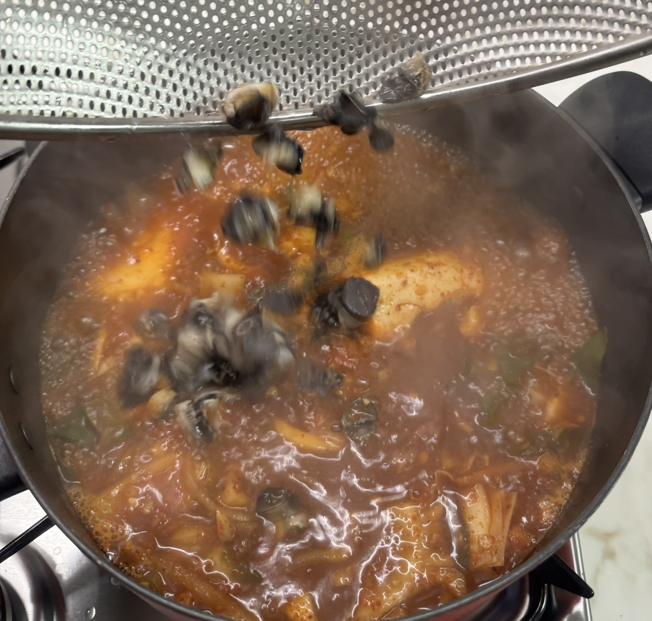 가끔 정성을 들일 때 바지락을 넣어주는데, 이번에는 우렁이까지 넣어 정성에 정성을 다해봤다. 우렁이는 쌈밥으로 먹을 때 우렁된장으로 많이 먹었지만 순두부찌개에 넣으니 잘 어울린다.