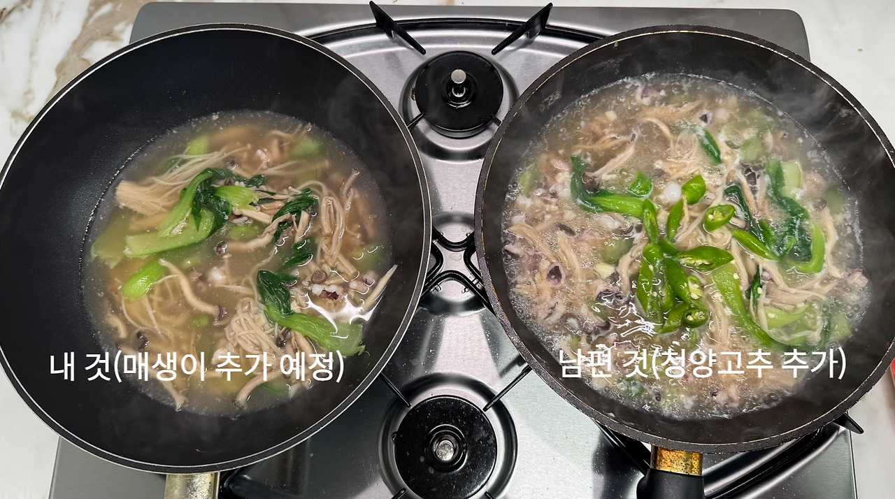 가족 간의 대화는 주로 식탁에서 이루어지는데, 맛있는 음식이 함께라면 더 좋은 시너지를 준다. 이번에 만든 쭈꾸미 덮밥은 오이를 넣었는데 오이의 존재감이 티 나지 않고, 대화 하면서 간단하게 뚝딱 먹을 수 있는 음식이다. 신랑에게는 청양고추를 넣어 칼칼하게 만들어주고, 내 것은 매생이를 넣어 더 걸쭉한 맛을 느꼈다.