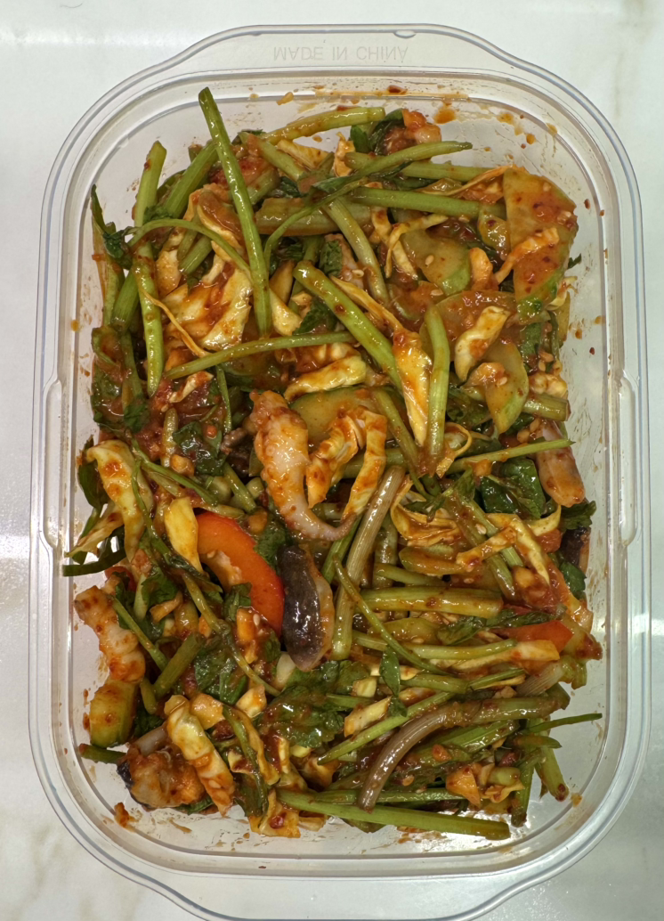 갓 만든 미나리 쭈꾸미 무침도 맛있지만, 하루 냉장고에 뒀다가 먹으면 더 맛있다. 쭈꾸미가 들어갔으므로 2~3일 안에 소진해야 한다.