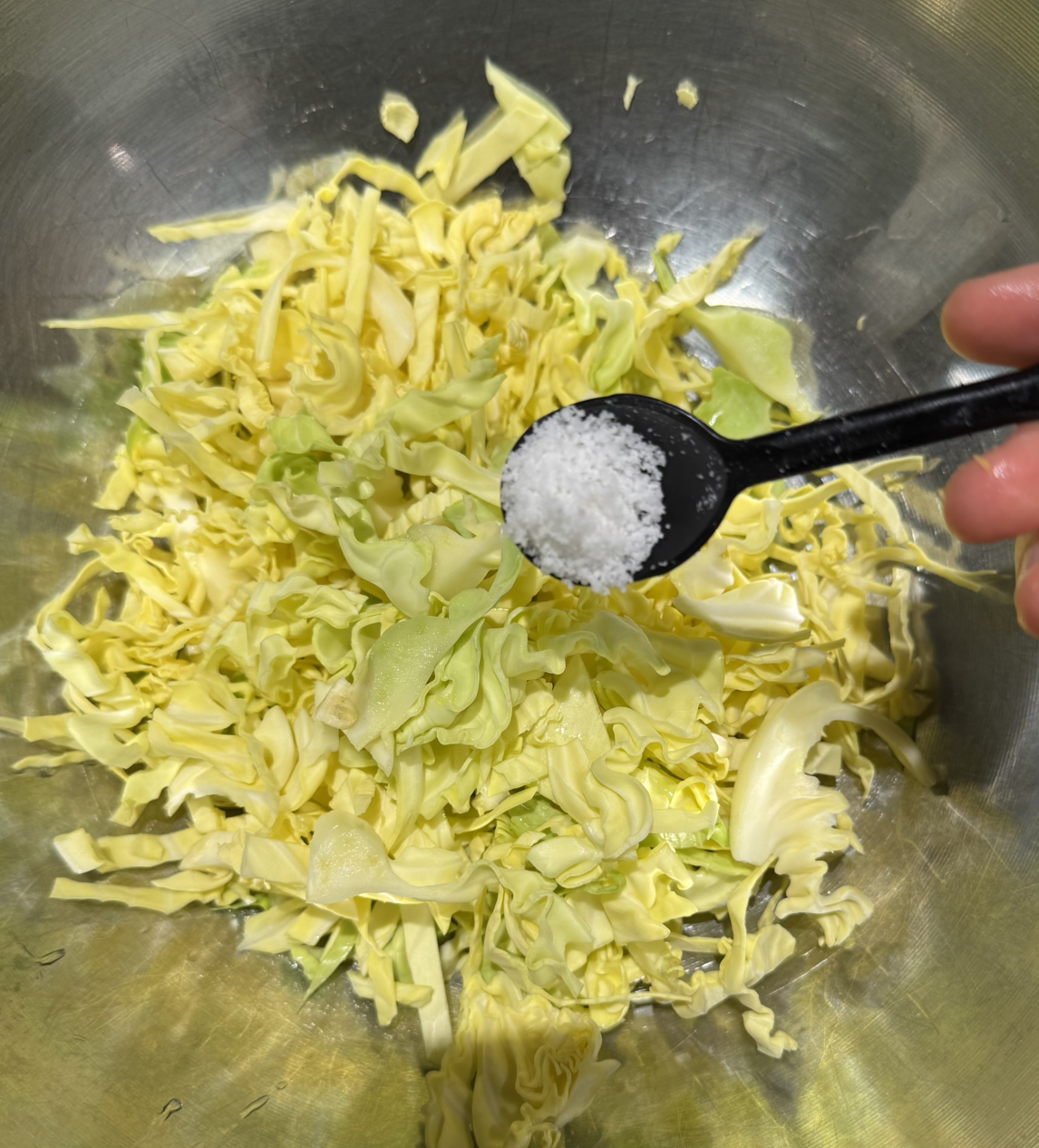 어머님이 위가 안 좋으신지 더덕, 양배추, 대추차, 생강차를 찾으시는 걸 엿듣고 메모해 뒀다가 이번 미나리 쭈꾸미 무침에 양배추를 넣어줬다. 양배추는 그대로 넣으면 억세서 소금으로 숨을 준여준 후 사용한다.