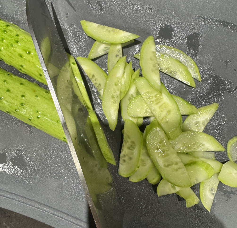 넣고 싶은 야채를 듬뿍 넣어 만들기 때문에 어머님께 필요한 야채와 좋아하시는 야채를 골라봤다. 평소 좋아하시는 시원한 오이를 준비했다.