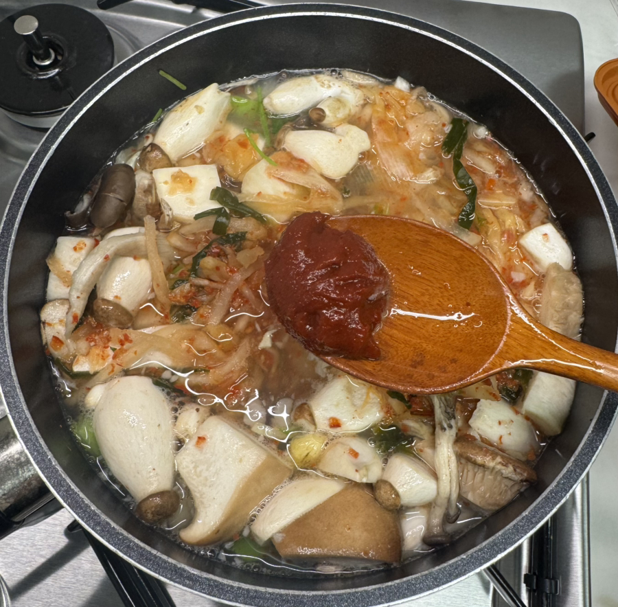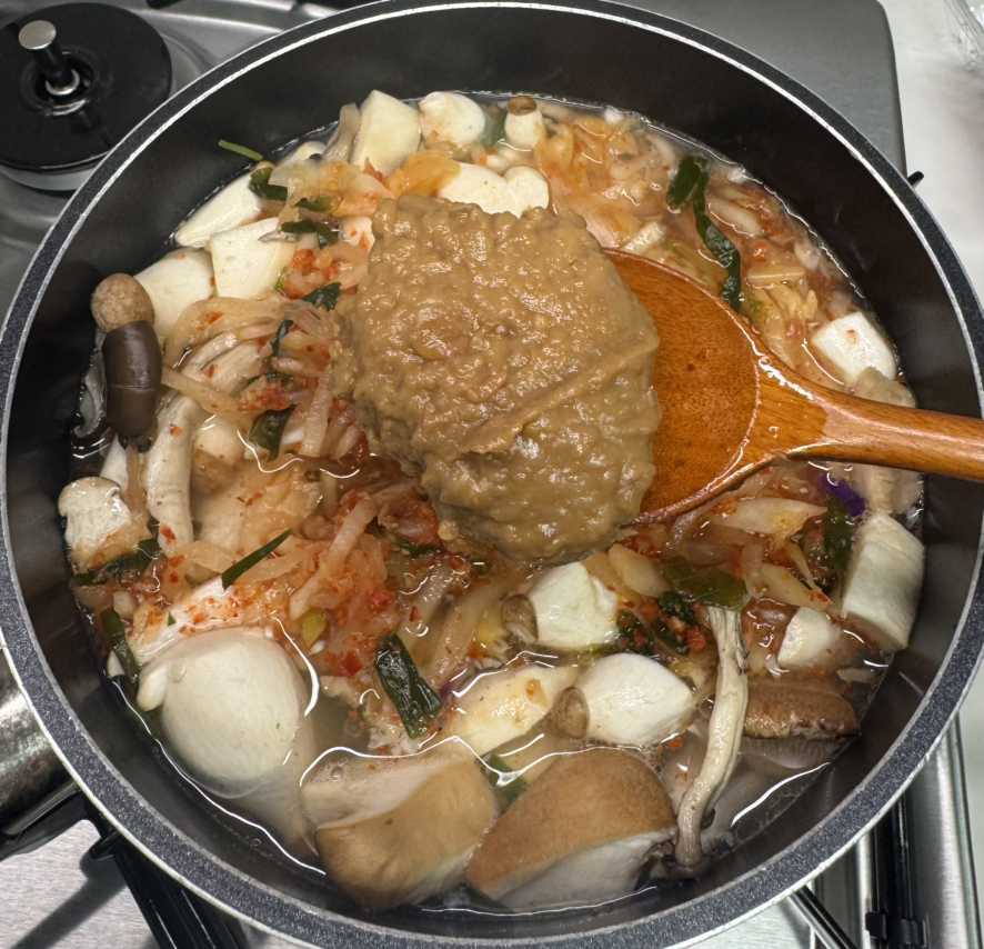 집된장을 다먹어서 시판된장과 고추장을 더해 걸쭉하게 끓였다. 시판된장은 집된장보다 달고 향기가 은은하며 부드러운 맛을 낸다.