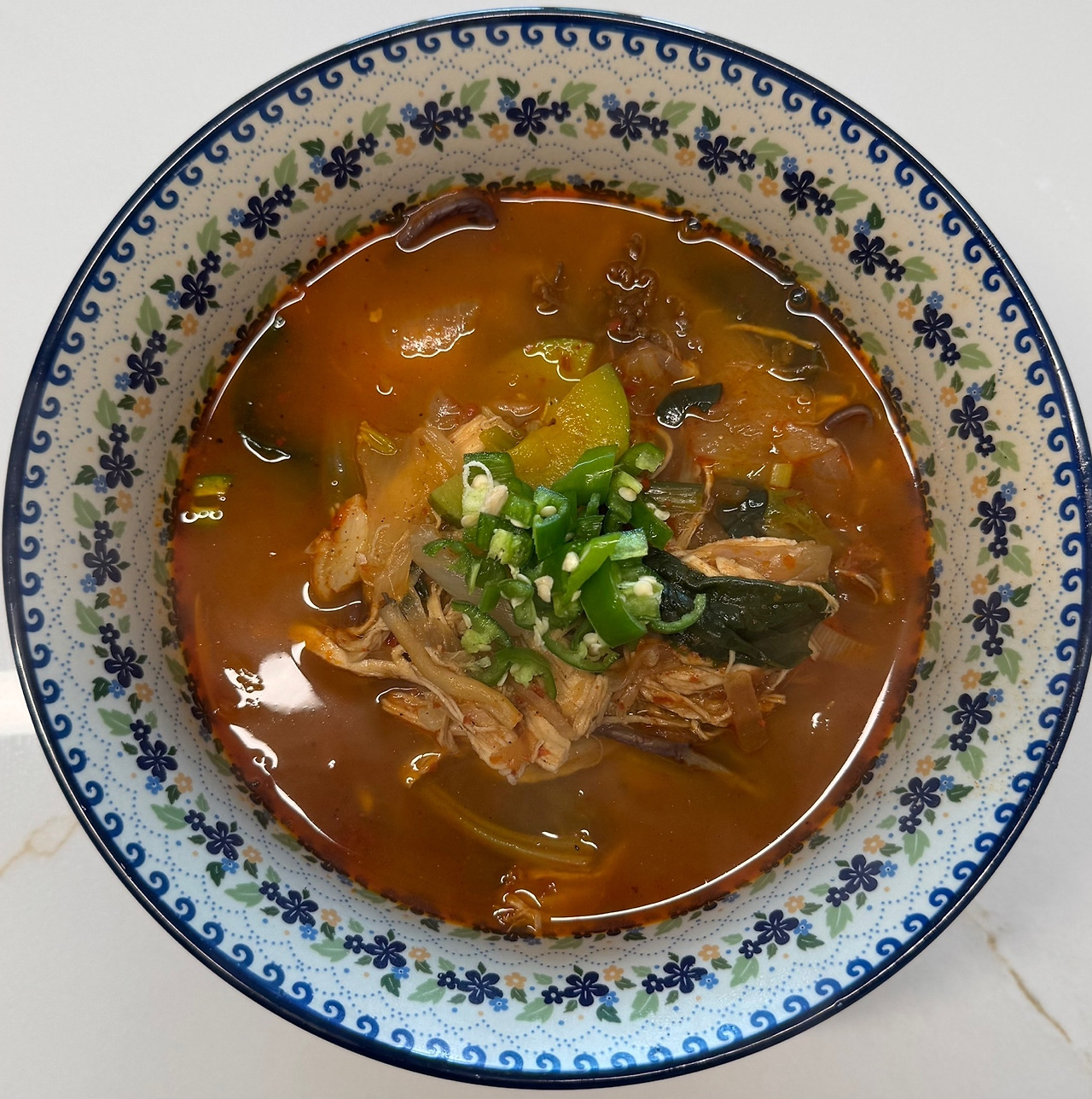 요새 뜨끈하고 얼큰한 국물을 먹고 싶어서 닭가슴살로 닭개장을 해봤다. 시중에 파는 닭개장과 맛은 비슷한 듯 안 비슷한 듯 하지만 양파를 넣어 달큼하면서 닭가슴살의 육수와 채소들의 화합으로 든든한 한 끼를 채울 수 있는 다이어트 닭가슴살 닭개장이다. 이 닭개장은 유지식단으로도 괜찮은 한 끼다. 채소에 함유된 탄수화물이 충분하므로 밥은 패스하거나 오트밀죽으로 대신한다.