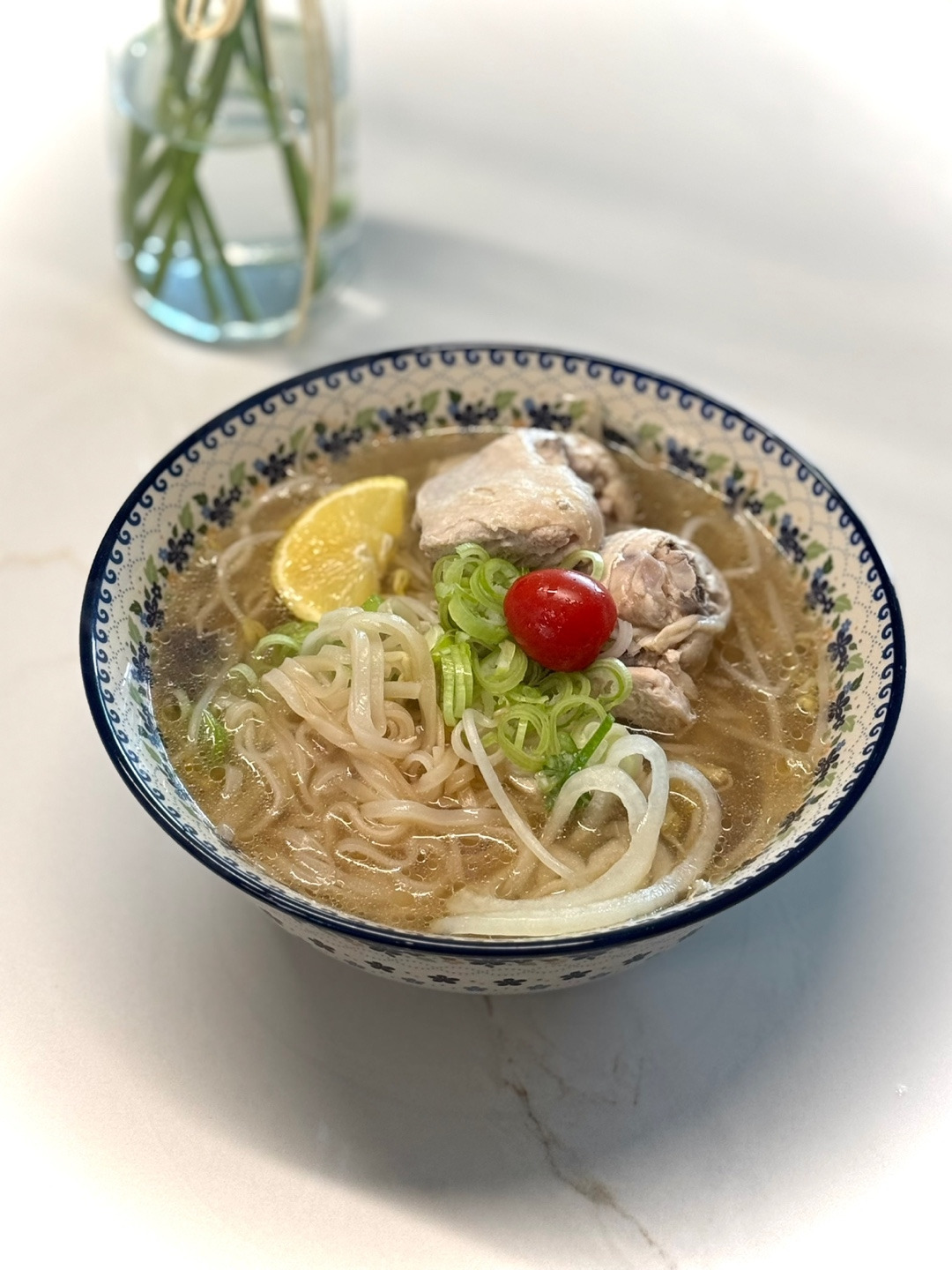 닭한마리를 넣어 푹 고은 국물에 칼국수가 아닌 쌀국수와 숙주를 가득 넣어 속도 편하고 가볍게 먹을 수 있는 닭한마리 쌀국수를 만들어 봤다. 닭과 채소들의 영양소를 온전히 섭취할 수 있는 맛있는 저염 쌀국수다.