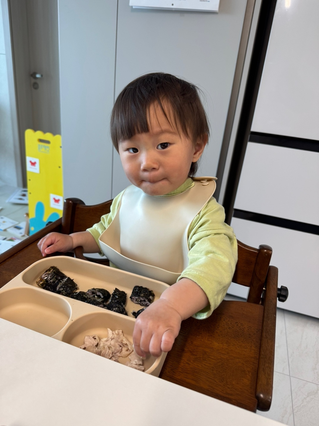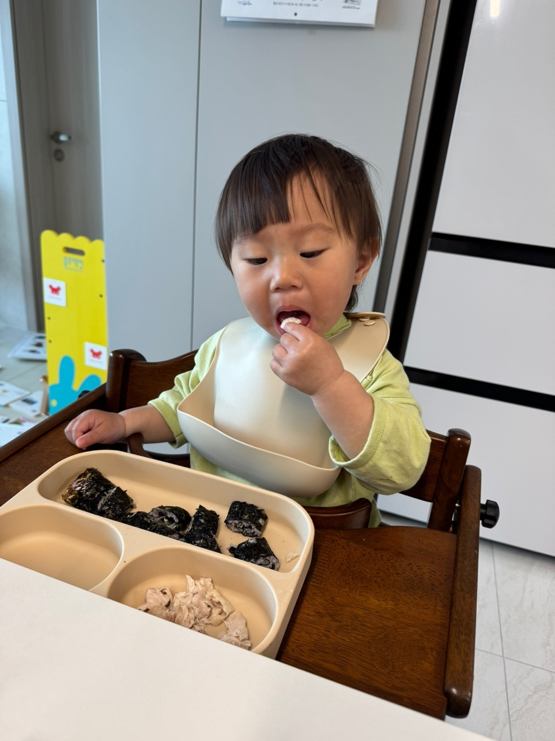 주용이에게 닭육수를 우릴 때 익은 닭을 주니 잘 먹는다. 이날 식사로도 닭을 주고, 간식으로도 닭을 주고, 다음날 아침밥으로도 닭을 죽으로 주니 한 그릇 뚝딱 비워냈다. 닭이 부드러워 아이도 좋아하는 듯하다.