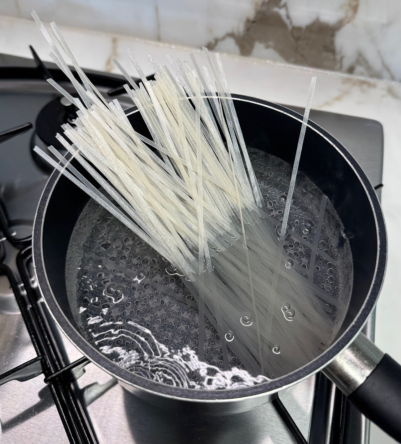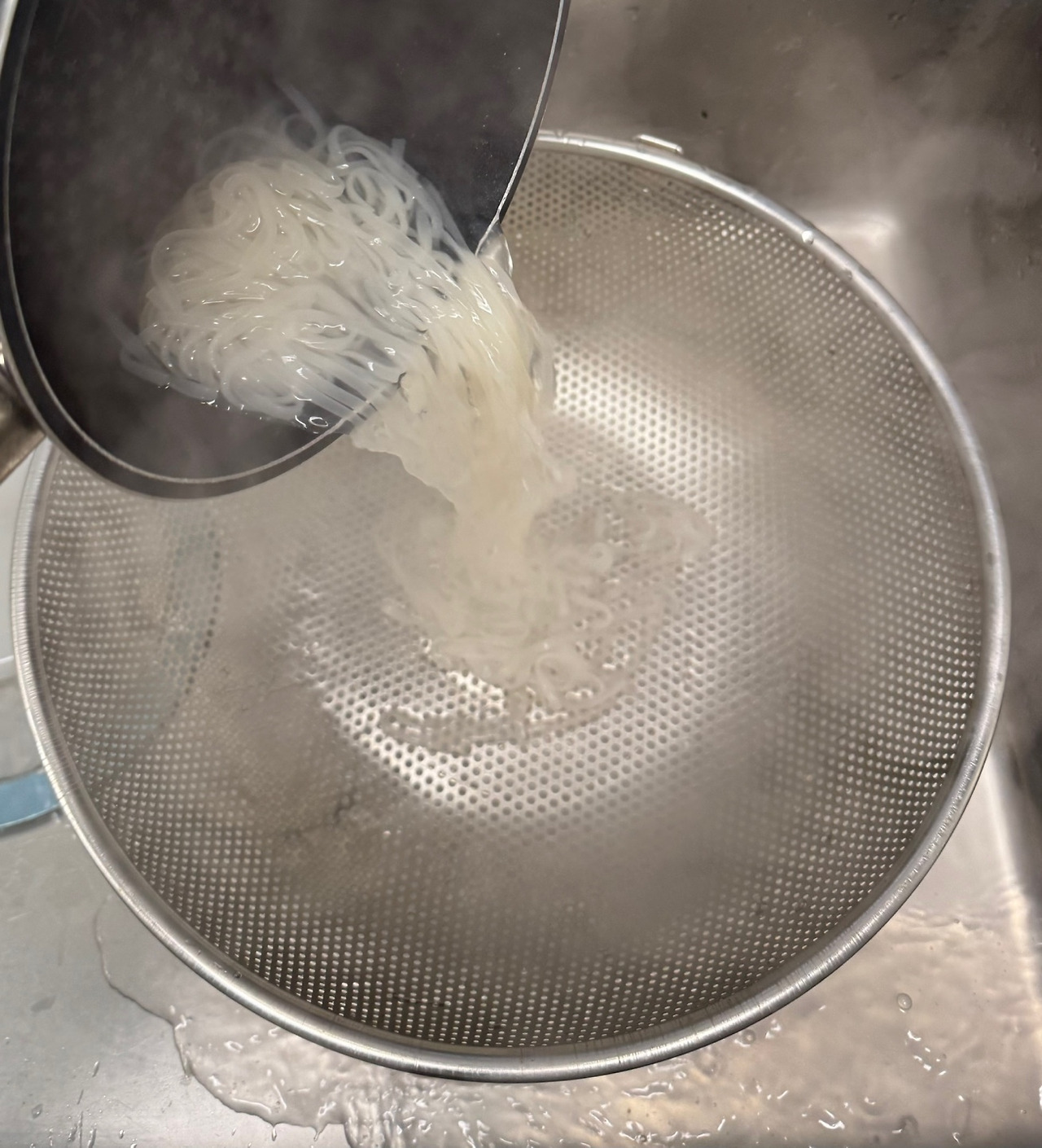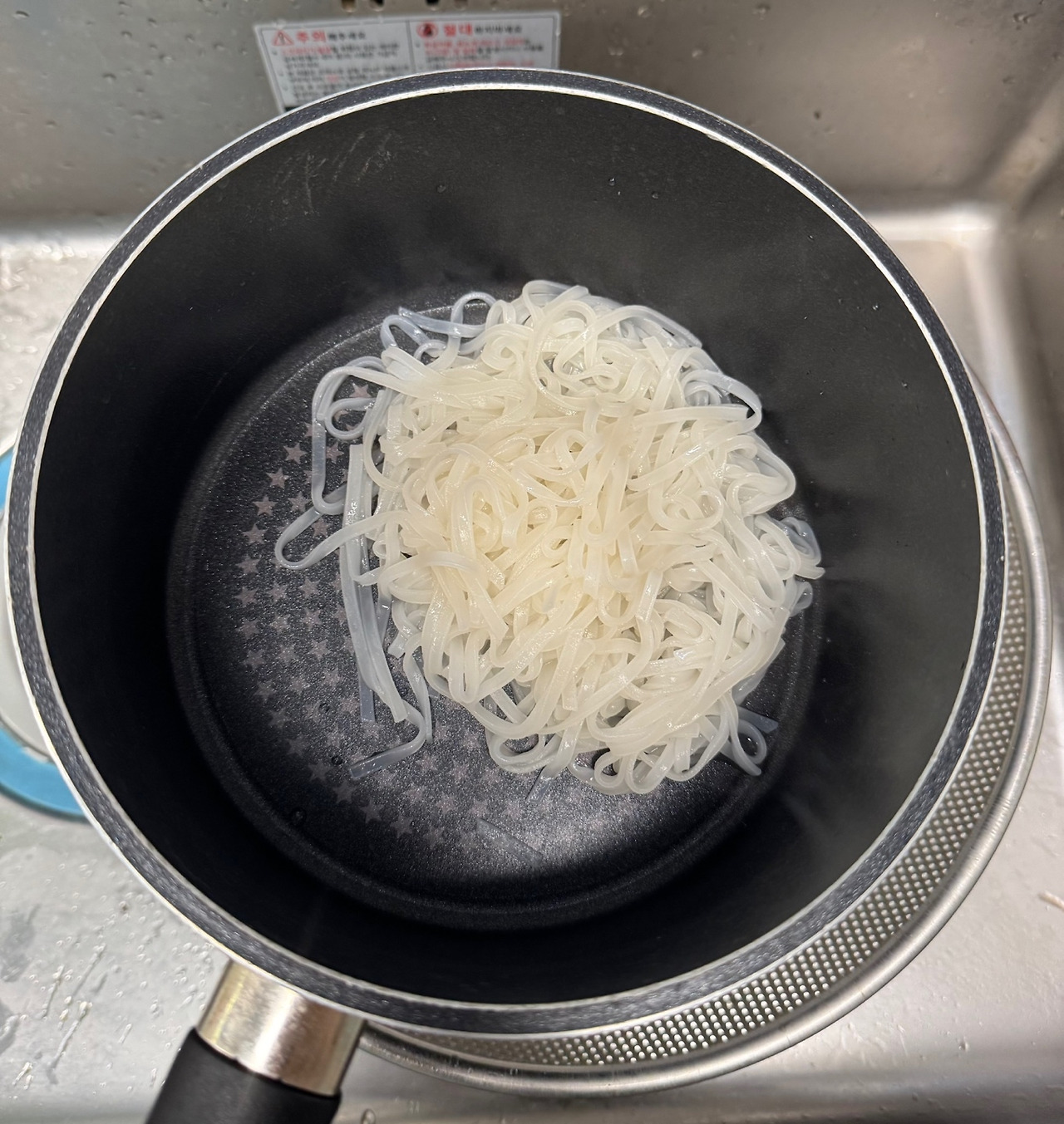 끓는 물에 쌀국수 넣고 5분 끓여서 채반에 물을 빼준다.