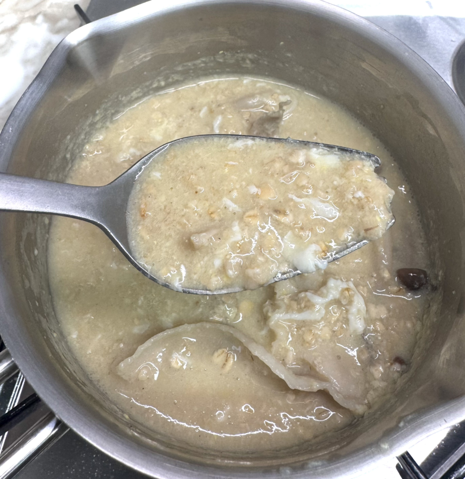 전골뒤의 마지막 하이라이트는 죽이다. 며칠 전 친구와 함께 샤브샤브집에 갔더니 죽 재료로 오트밀이 나왔다. 오트밀은 밥보다 빨리 죽으로 만들 수 있는 장점이 있는데, 친구와 오트밀죽을 맛있게 먹어서 이번 전골에도 응용해 봤다.