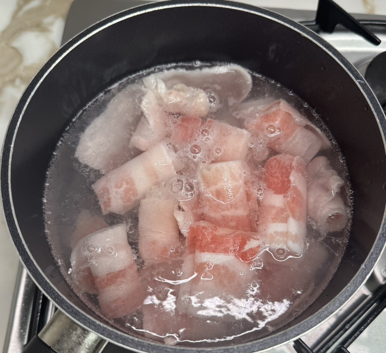1. 대패삼겹살은 따로 물에 익혀둔다.