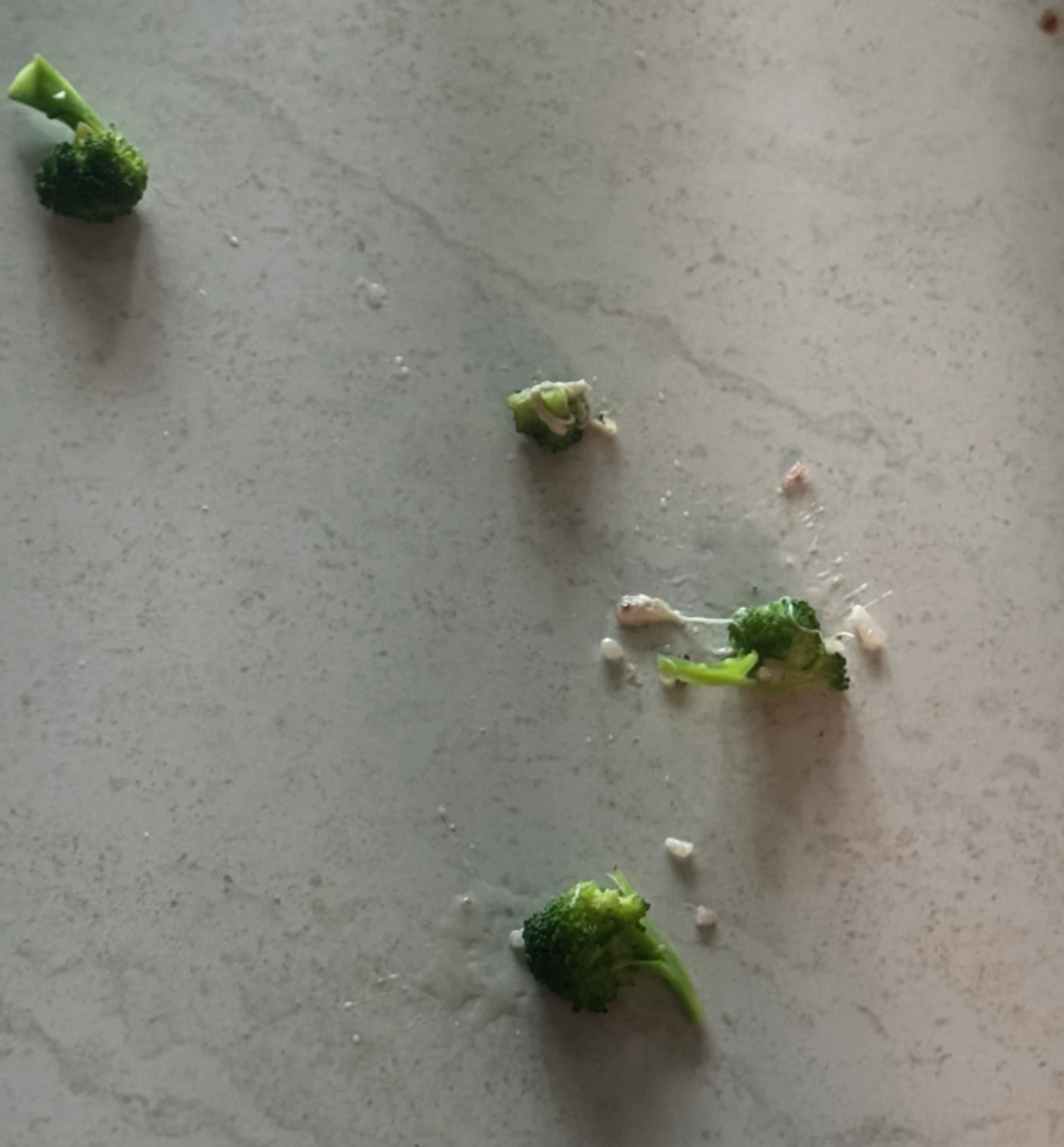 주용이는 브로콜리를 싫어하는듯하다. 밥에 같이 줬더니 따로 빼서 바닥에 던져놓았다. 강한 의지를 행동으로 보여주는 나의 아기.. 이 모습도 사랑스럽구나.