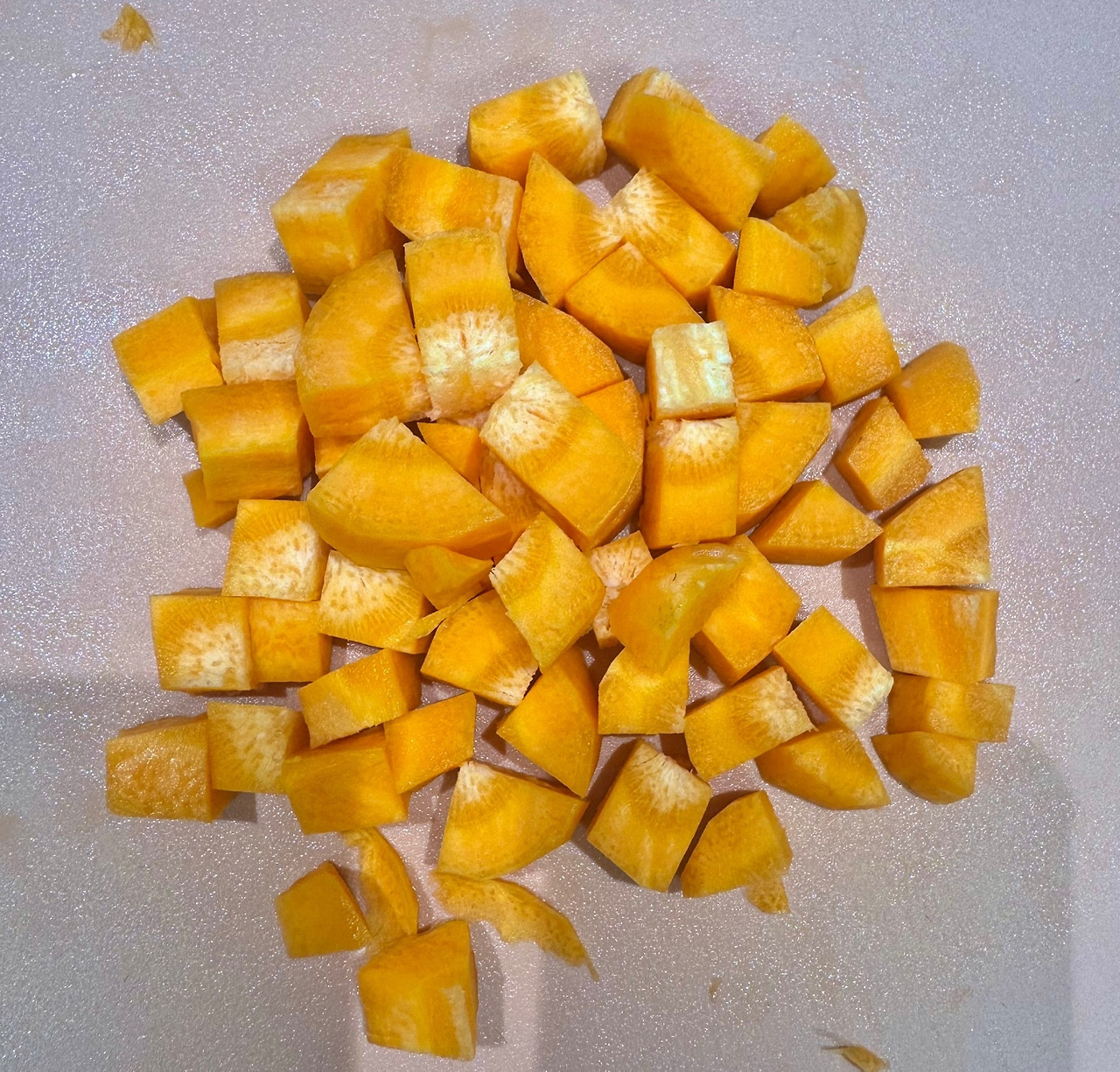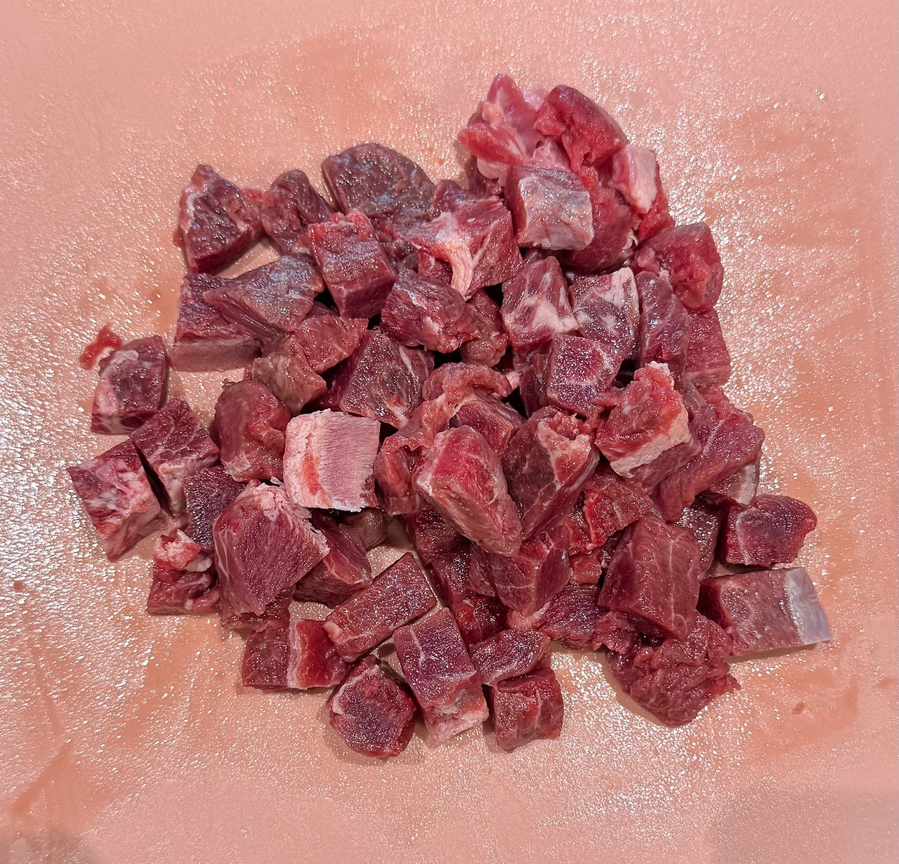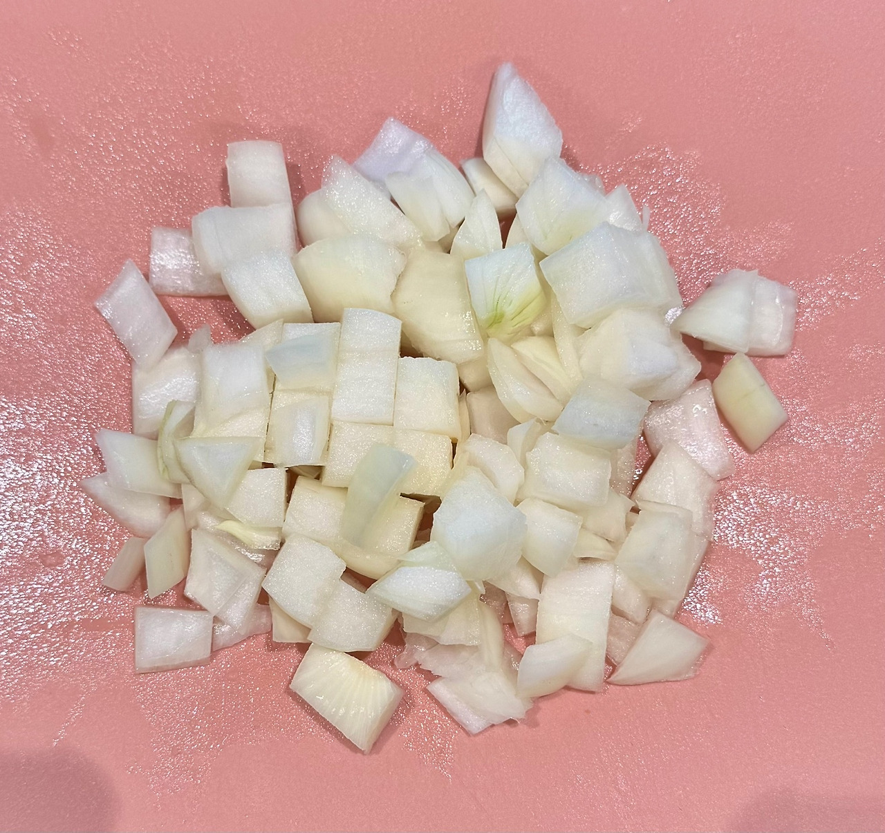 - 건더기 재료(양파, 양배추, 당근, 감자, 소고기, 애호박)를 깍둑 썰어 준비한다.