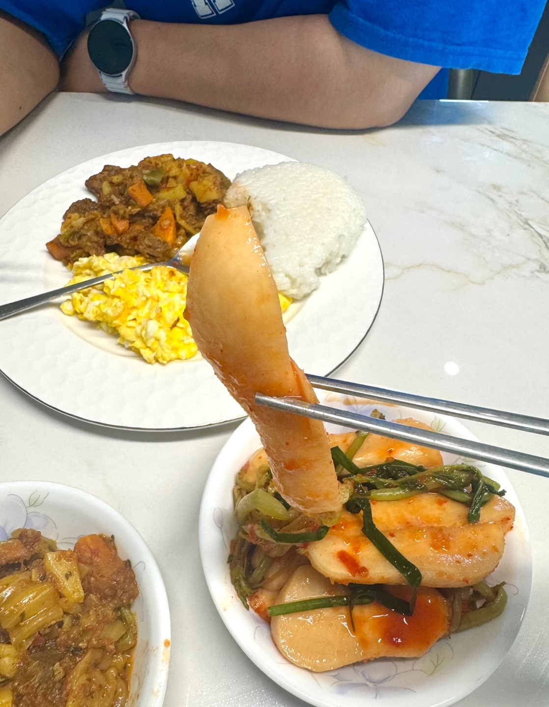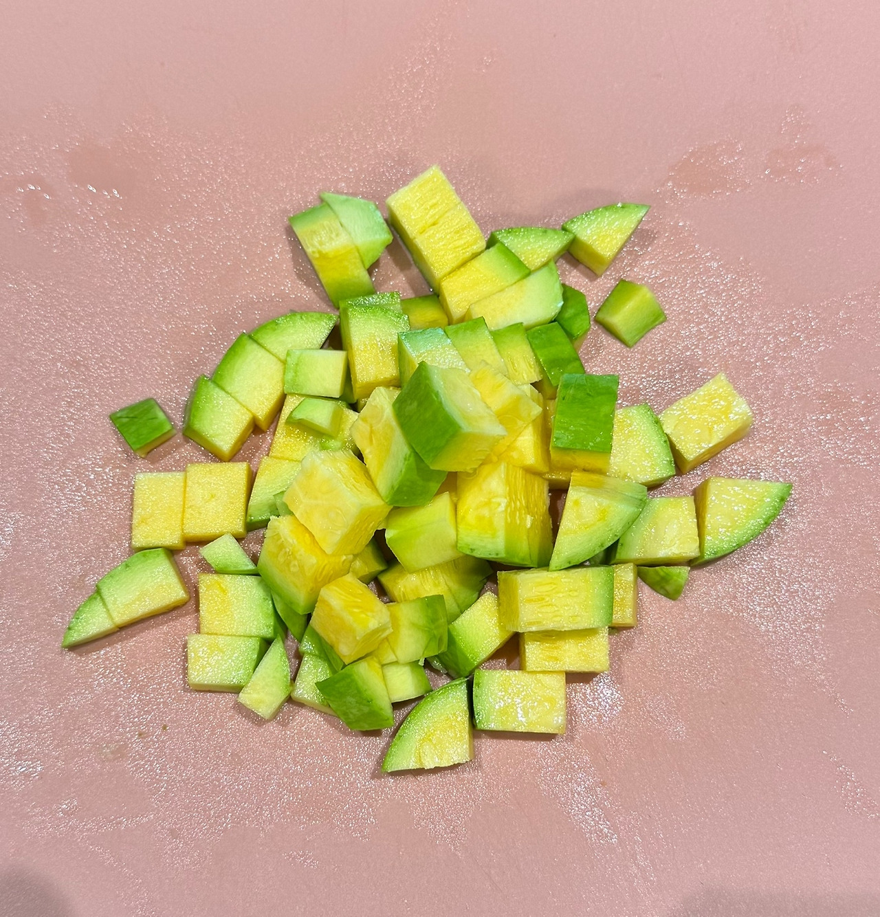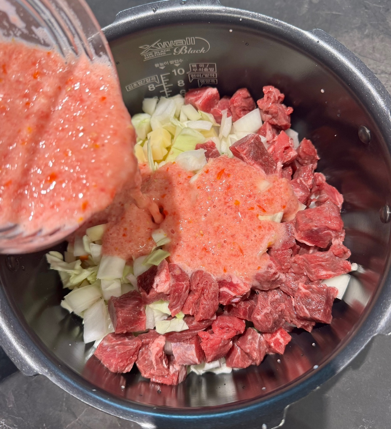 - 밥통에 깍둑썬 건더기 재료와 갈아준 소스재료를 넣는다.
