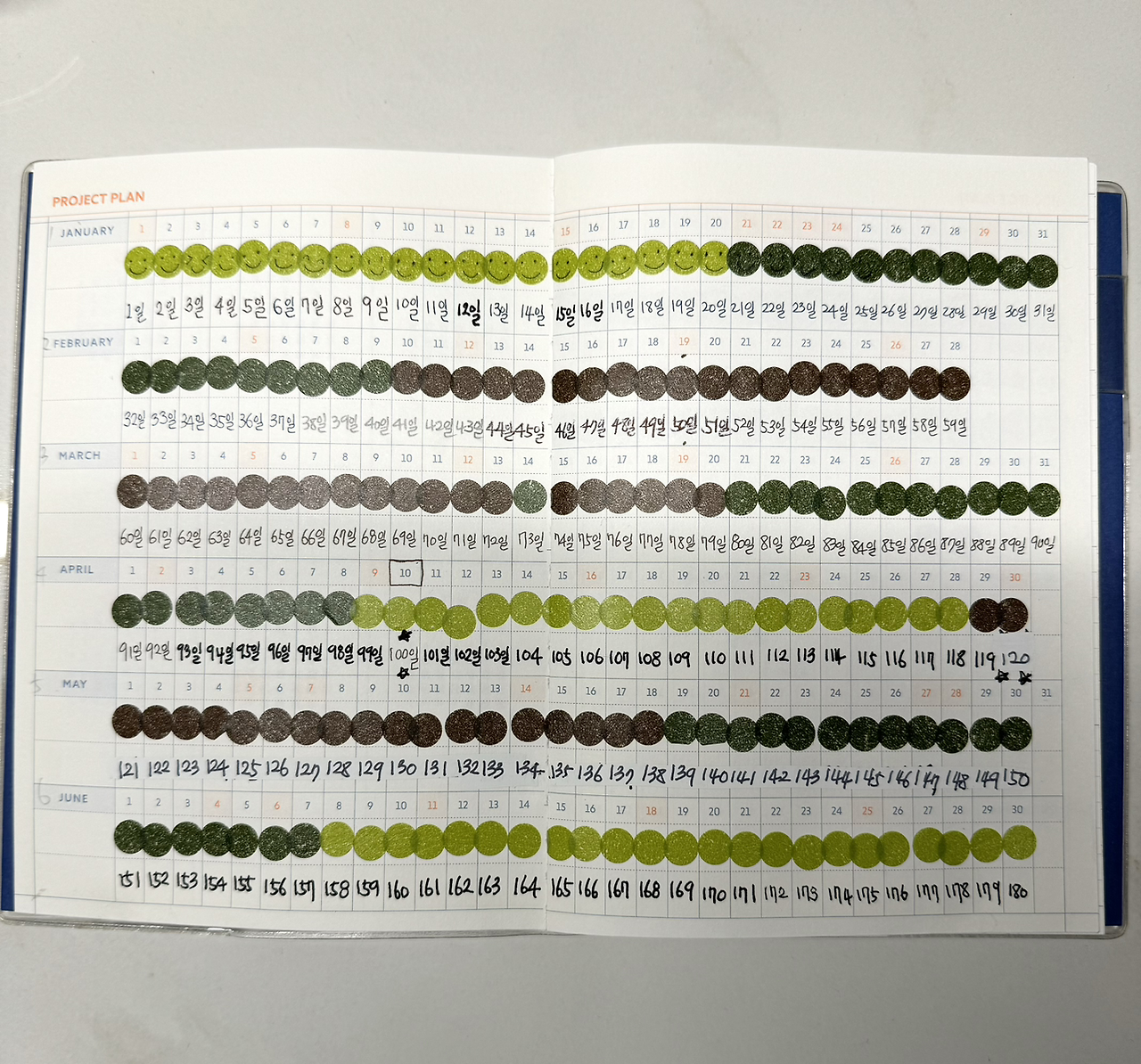 하며 성공한 날마다 수첩에 스티커를 붙였다.