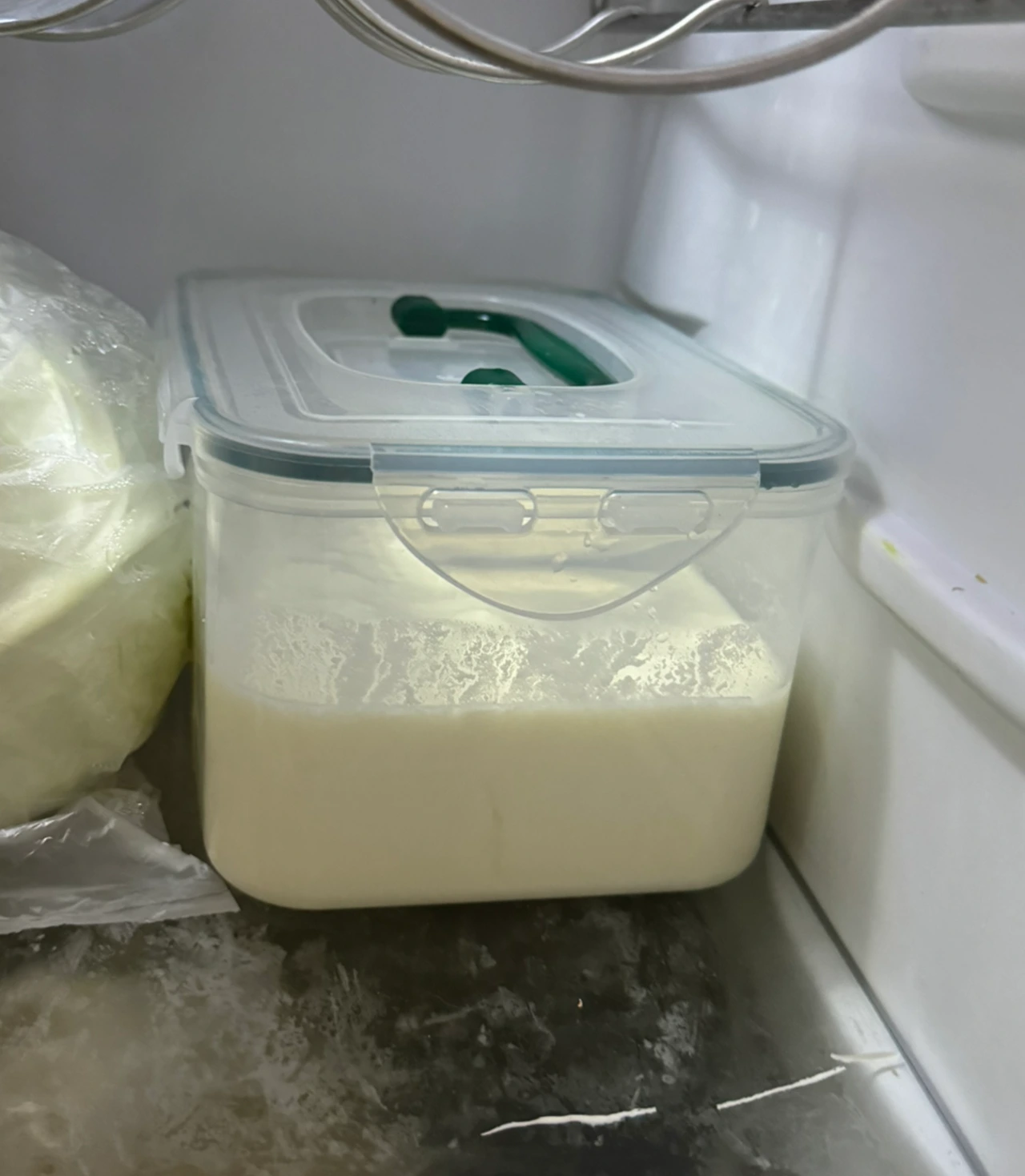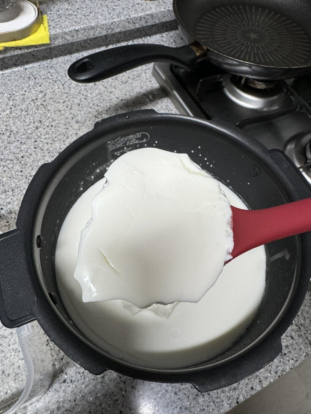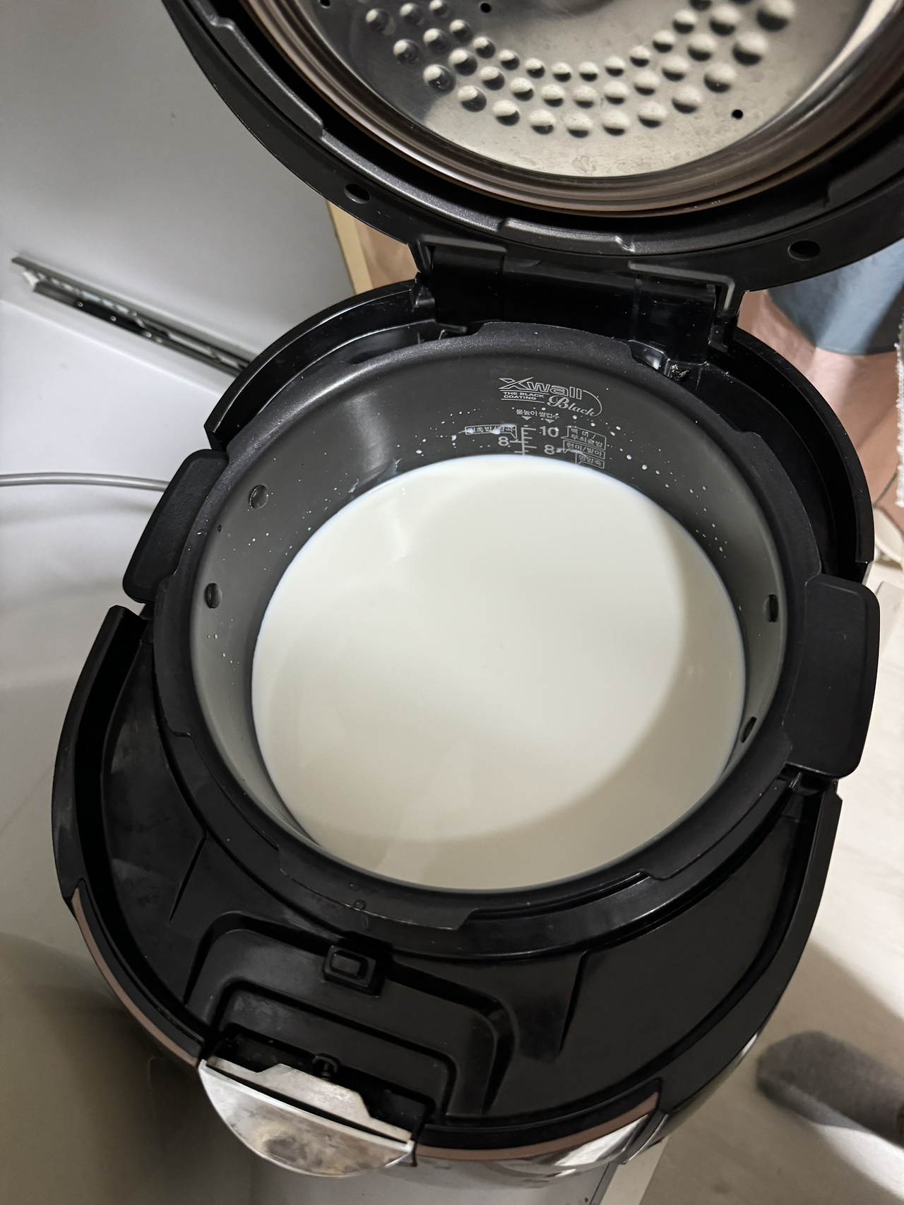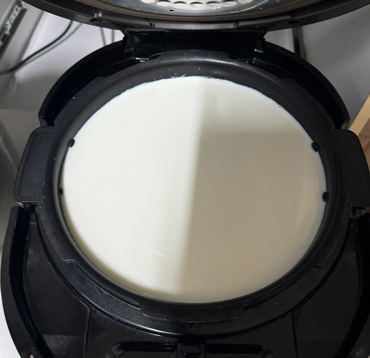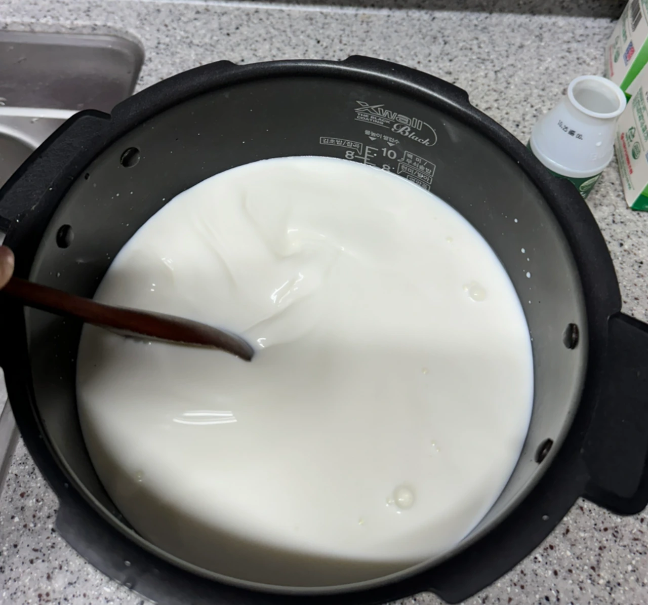 밥솥에 우유 2, 농후발효유 2를 넣고