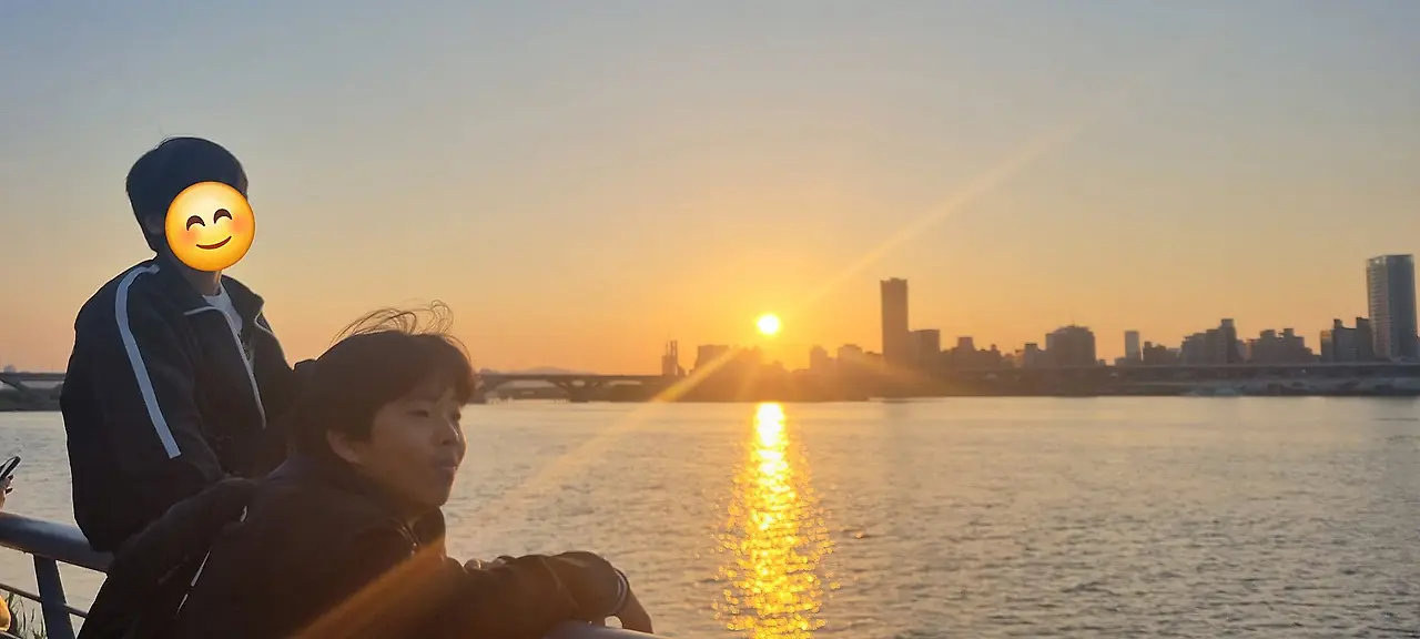 밖으로 나와 발길 닿는 대로 걷다 보니 사람들이 한쪽 방향으로 우르르 몰려가는 것이 보였다. 아, 저기가 따다오청이구나. 가까운 거리임은 알고 있었는데, 이렇게나 디화지에 한복판에서 바로 연결될 거라고는 생각 못 해서 '앗싸! 다음 일정 해결!' 하는, 일정 날로 먹겠다는 소리가 마음에 울려 퍼졌다. 그곳은 떠오르는 핫플임을 입증하듯 푸드코트에서 칵테일 마시는 사람, 자전거 타는 사람, 농구하는 사람들의 자유로움으로 가득했는데, 생각보다 인파가 많고 혼잡해서 술 생각은 나지 않았다. 코리안 치킨과 떡볶이는 더더욱. 그렇게 사람과 음식 사이를 빠져나와 한적한 곳으로 걷다가 부둣가의 일몰 포인트에 다다랐는데, 머릿속엔 온통 '한강이 더 예쁘네' '좋은데 뭔가 아쉽네'하는 생각만 가득한 내가 노을의 아름다움에 취할 턱이 있나? 아무 감상이나 떠올리지 말고 일단 노을 한번 지켜봐, 하는 명령어를 입력하고 잠시 발걸음을 멈췄다.