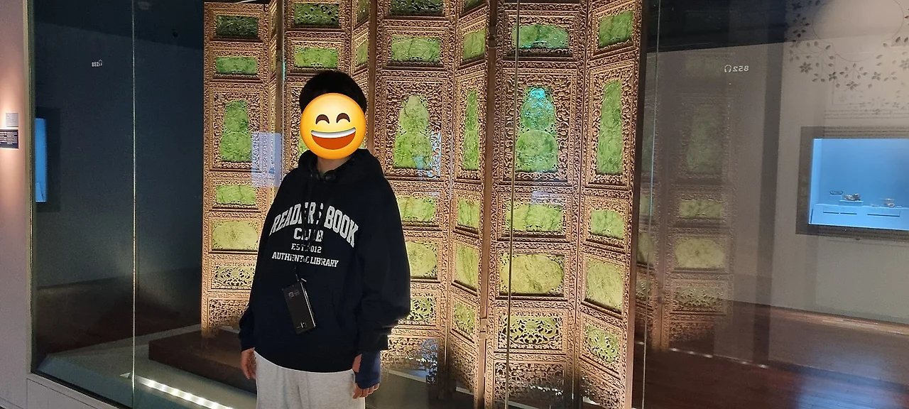 버스 투어할 때 가이드가 고궁 박물관은 무조건 해설자 동행으로 하라더니 돈 들이는 데는 분명 이유가 있었다. 아닌 게 아니라, 인솔자 없이 우리끼리 돌아다니려니 어디로 들어가서 어디로 나와야 하는지도 헷갈리고, 방금 나왔던 전시관도 '여기, 둘러본 거 맞지?' 하며 확인 사살해야 할 만큼 동선 정하는 데 애를 먹어서 가이드를 앞세운 사람들이 부럽게 느껴졌다. 물론 우리도 투어를 고려했었지만, 그놈의 돈, 돈이 문제였다. 2시간 투어하는 데 인당 3만 원, 도합 9만 원(입장료, 수신기 별도)이 드는 옵션을 놓고, 자유로운 관람을 명분으로 지출을 아꼈던 것. 결국, 1시간 만에 관람 포기 선언을 외치고 박물관에서 탈출했다.