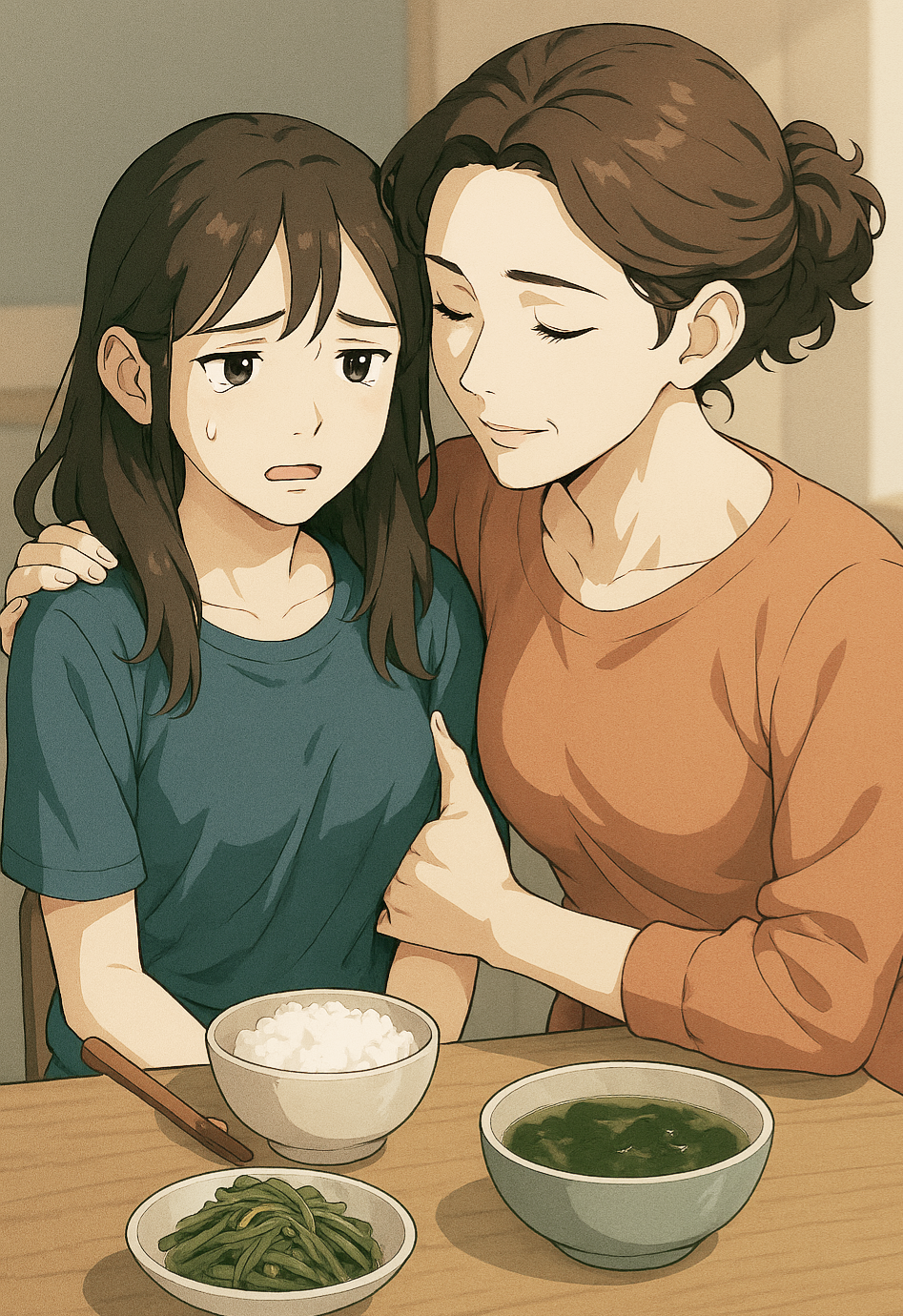 그날 저녁, 최종 면접에서 또 떨어진 딸이 처진 어깨로 현관문을 열고 들어왔다. 울먹이는 목소리로 엄마를 끌어안으며 말했다.