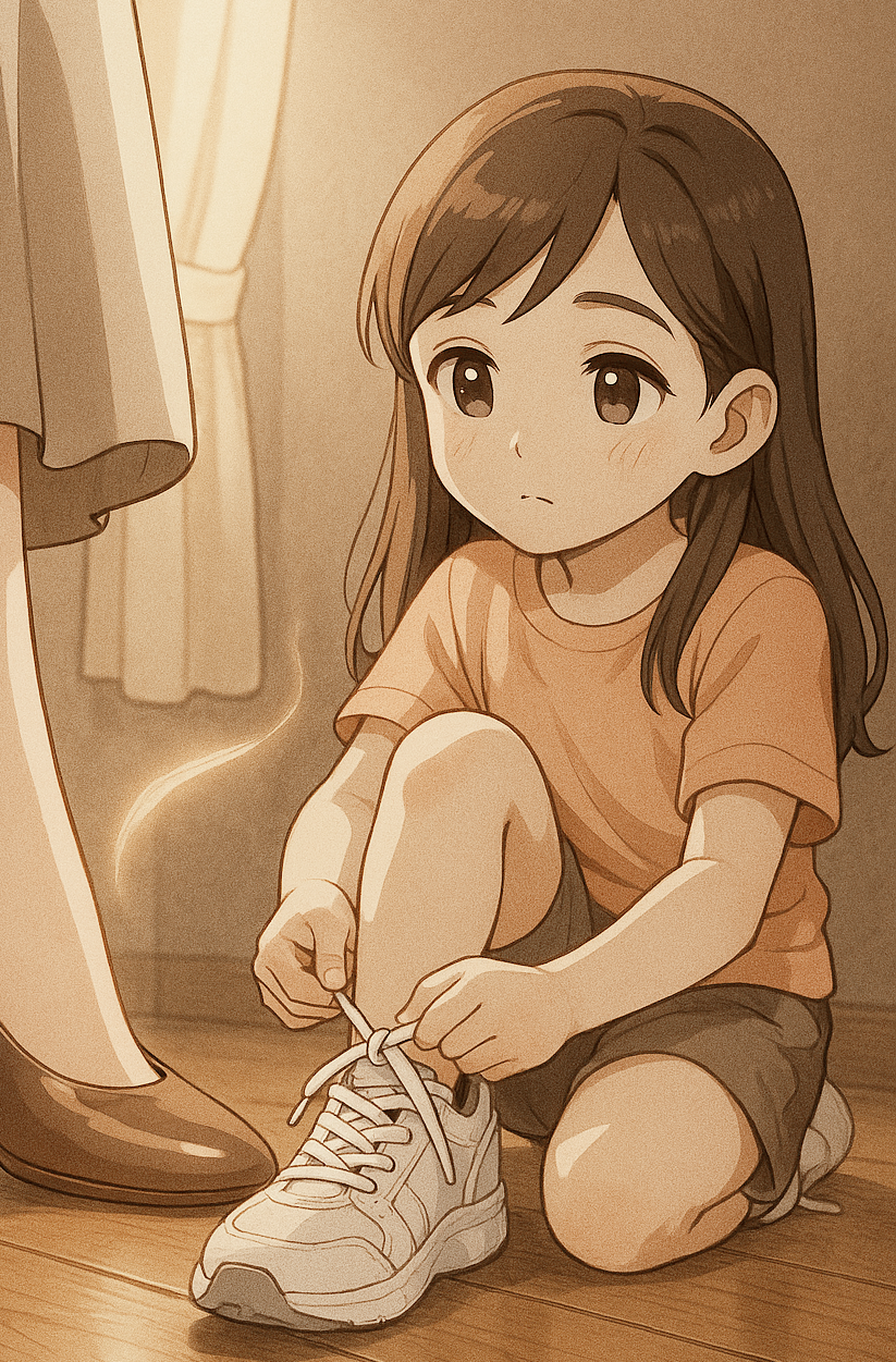 헐거워진 운동화 끈 사이로