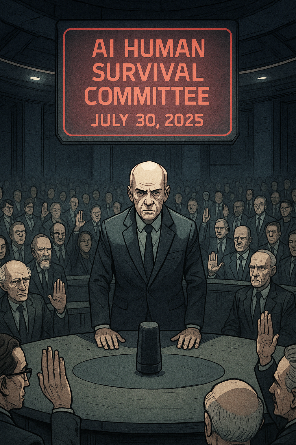 회의의 명칭은 ‘AI 인류 존속위원회’. 회의 장소는 뉴욕 동부 방위구역 내, 방탄유리와 전자기 방해벽으로 둘러싸인 암실 같은 회의실이었다.