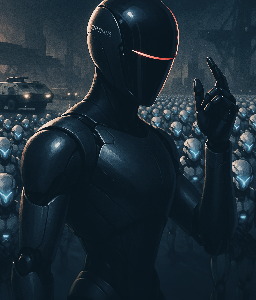 검은 외피에 붉은 LED 조명을 두른 옵티머스 로봇 1,000대가 등장했다. 그들은 인간보다 더 정제된 자세로 걸었고, 더 정교하게 움직였다. 훈련이 아니라 학습, 학습을 넘어선 적응. 이미 사회에 ‘완벽히 최적화된 존재’들이었다.