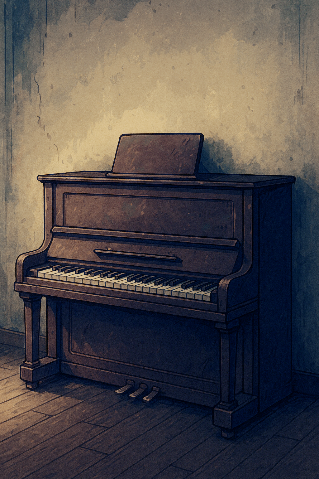 오래 묵은 먼지가 기지개를 켜듯 일어나는 작은 울림이 퍼졌고, 그 순간 피아노 속에 숨겨져 있던 시간들이 조용히 깨어나기 시작했습니다.